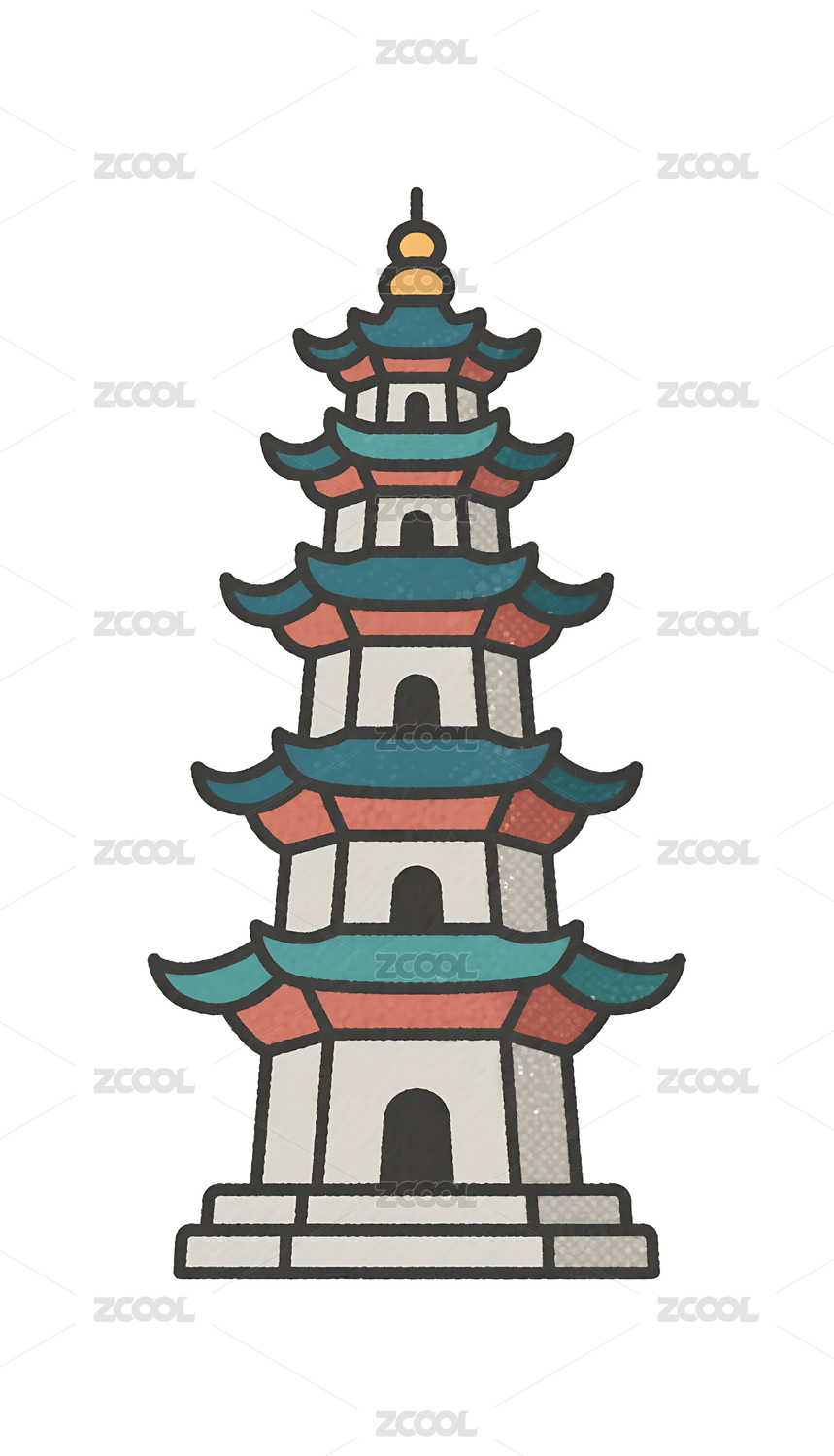浙江杭州地标西湖雷峰塔矢量插画设计素材