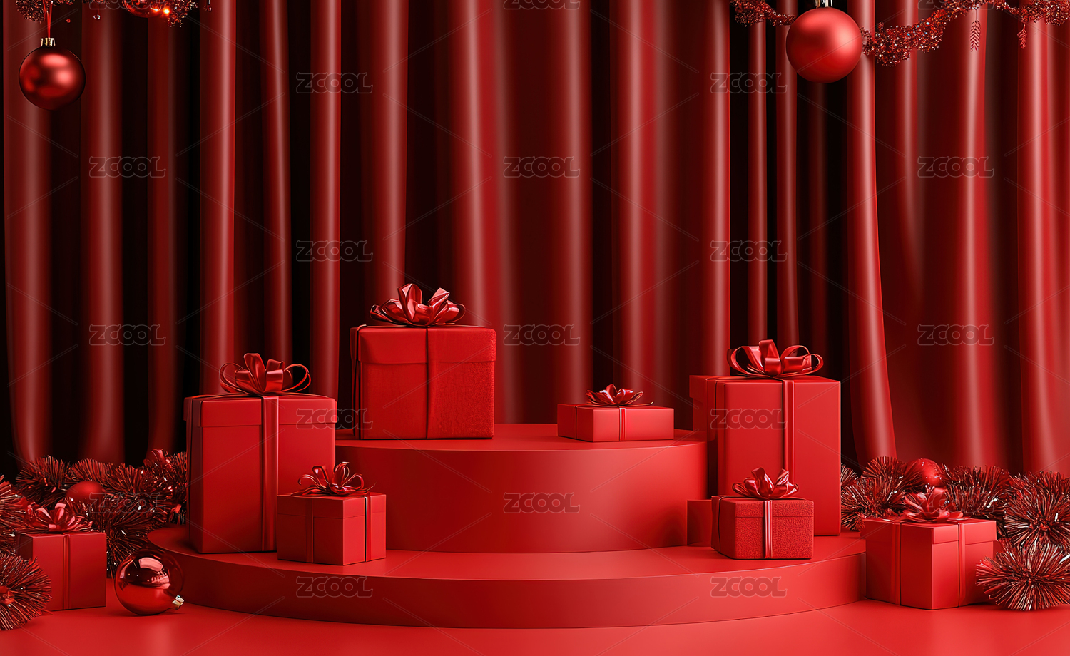 电商,圣诞节,平安夜,驯鹿,红色,圣诞树,礼物,礼盒,展台,丝带