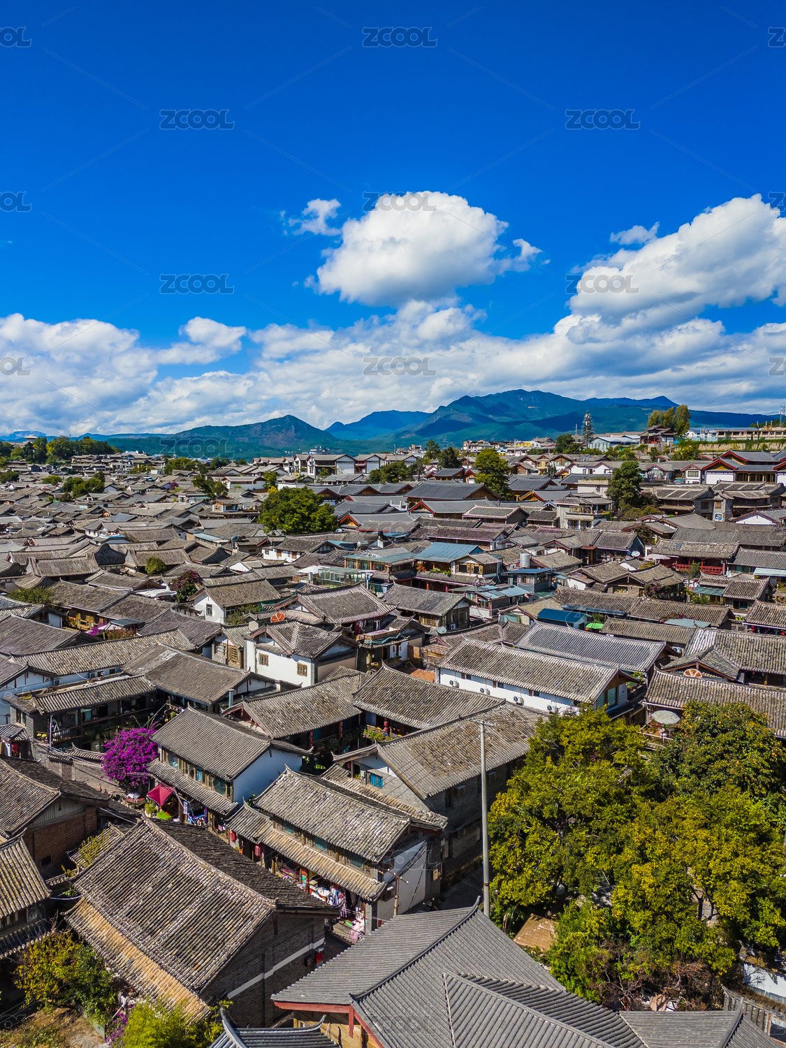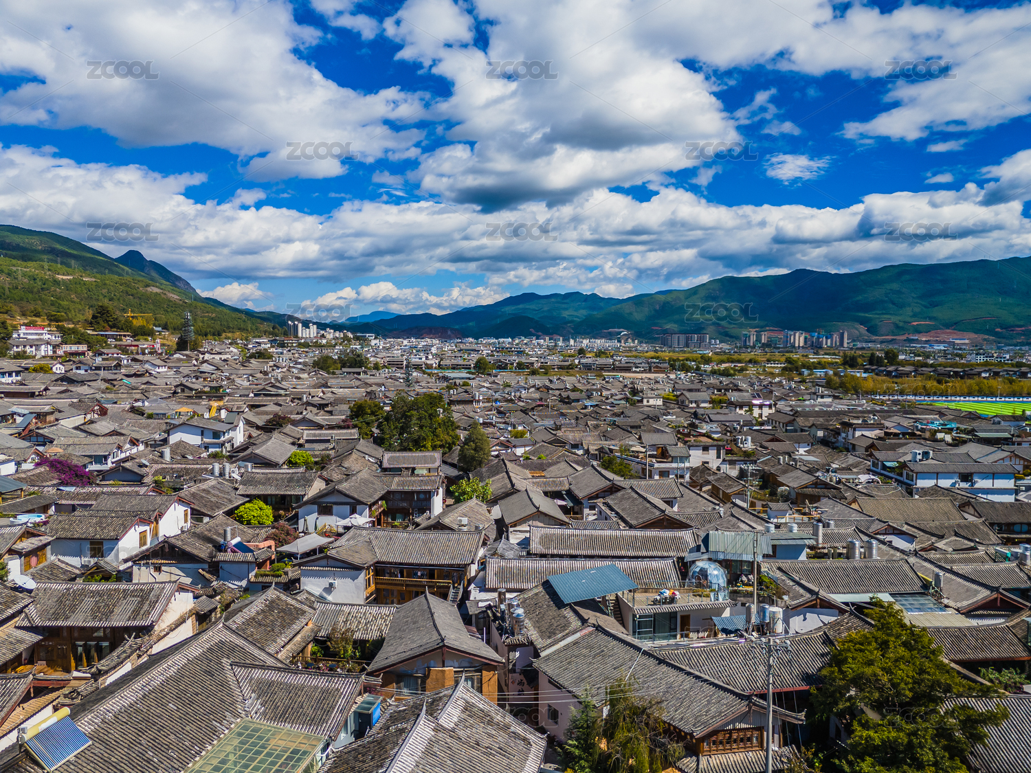 航拍云南丽江古城丽江市古城区大研镇建筑