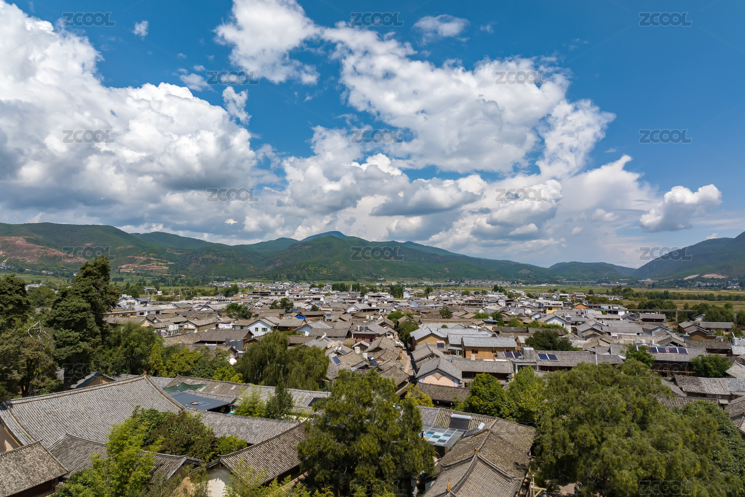 航拍云南丽江束河古镇茶马古道集镇丽江古城