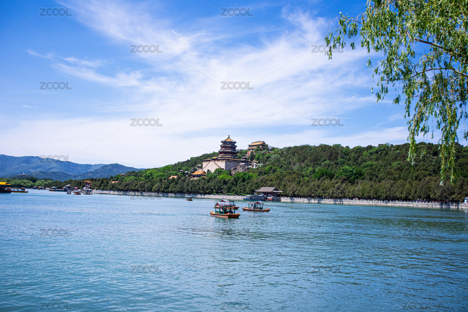 颐和园,公园,佛香阁,昆明湖,北京,首都,户外,室外,蓝天,白云