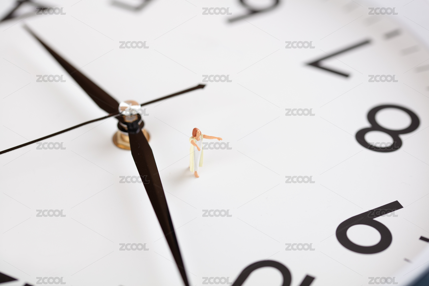 微缩创意拉扯时钟指针阻止时间流逝的小人