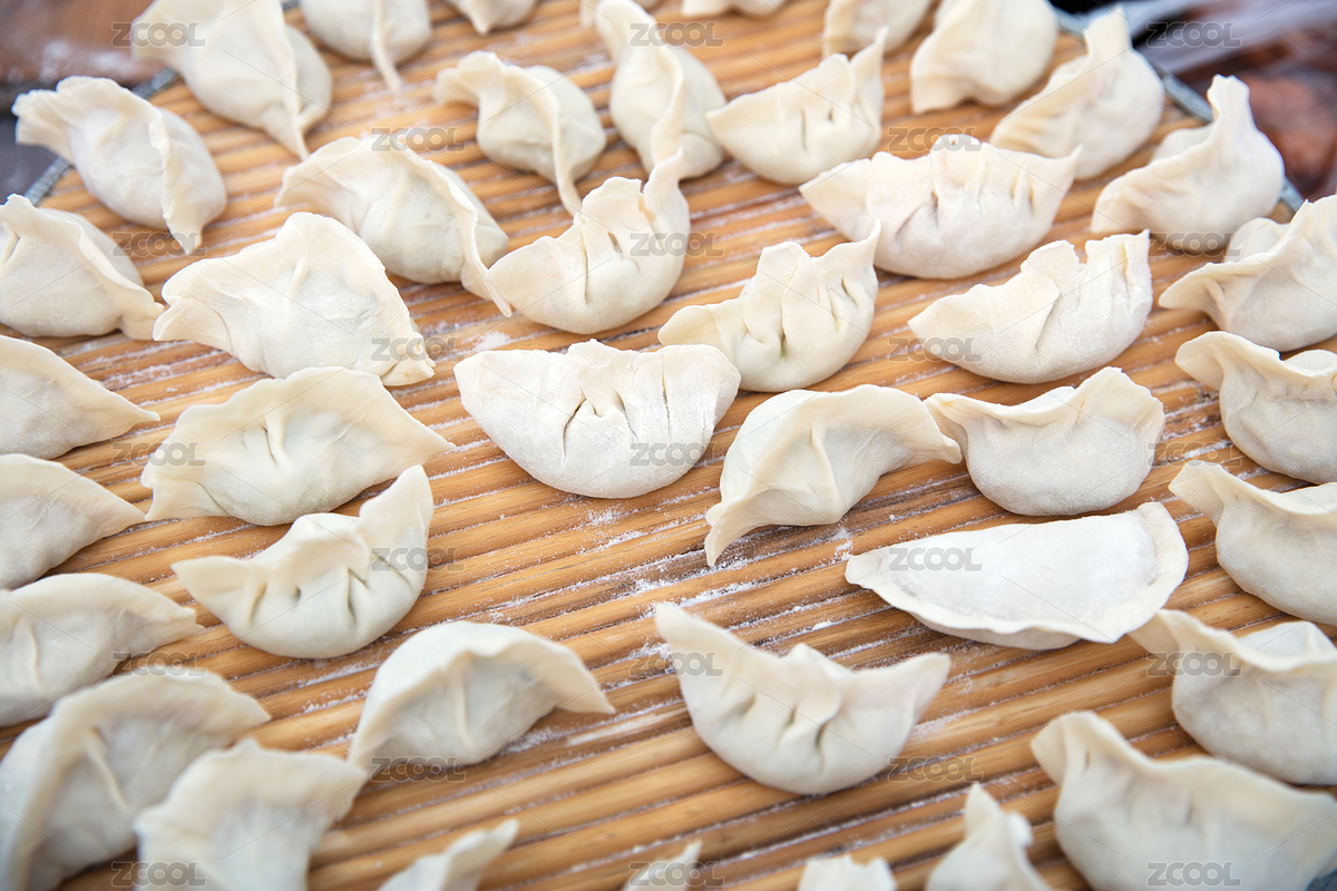 中国节日里包好的白面饺子