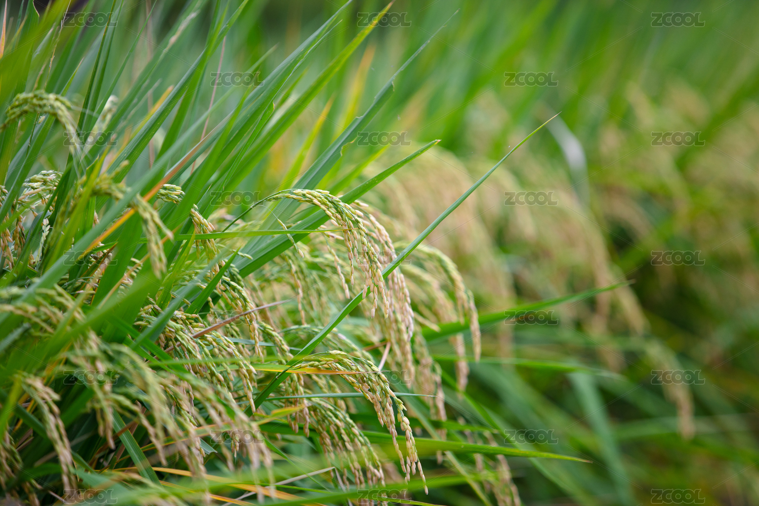 乡野间茂盛生长颗粒即将饱满的水稻特写