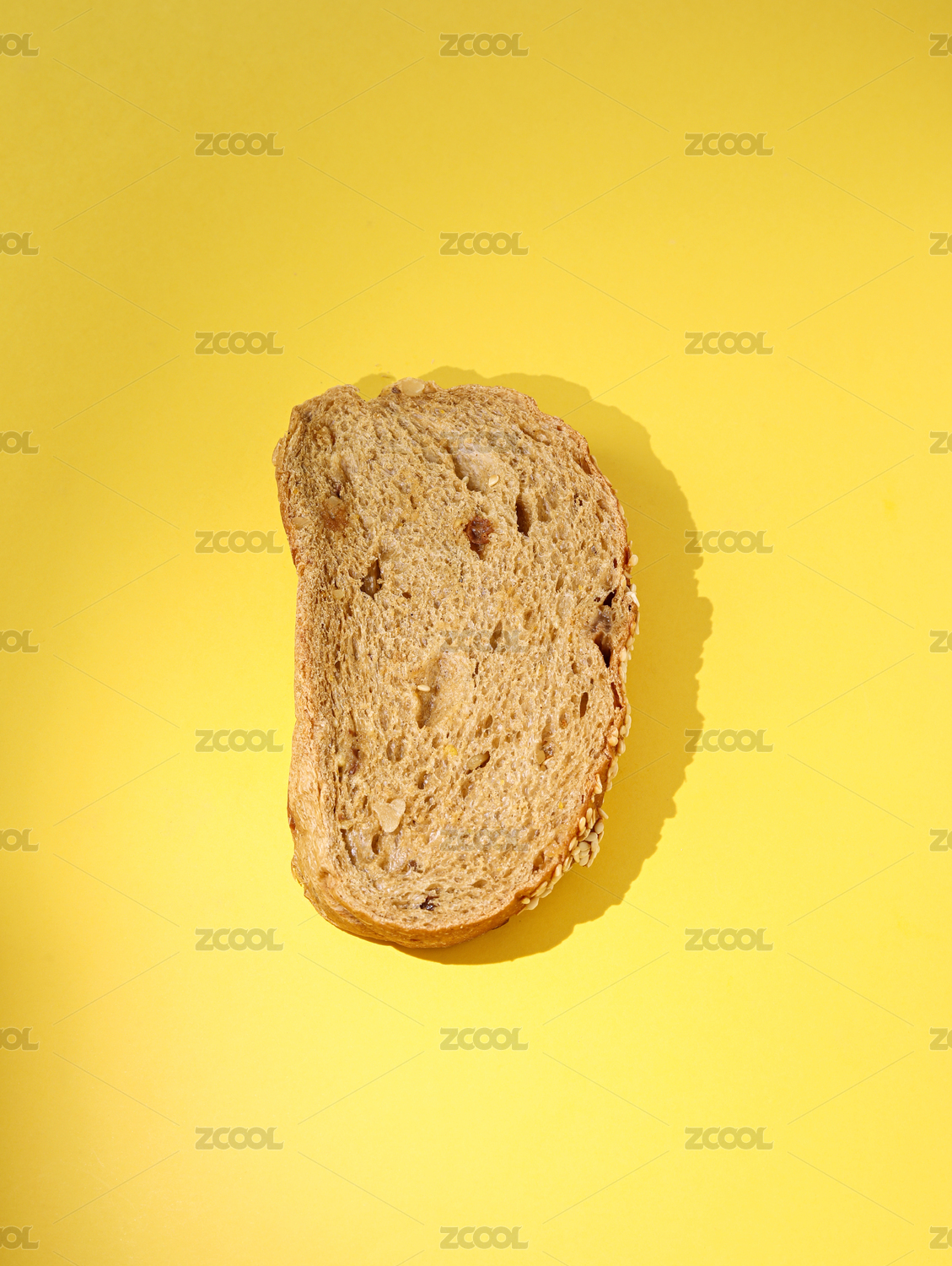 黄色背景上的一片粗粮面包