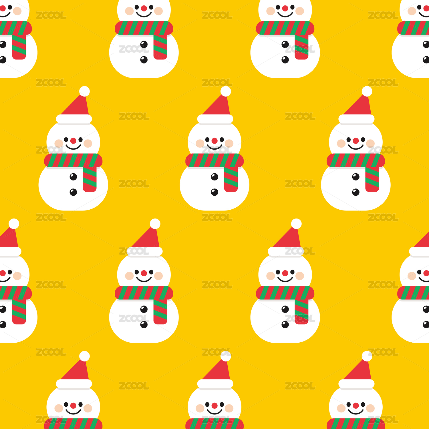 卡通圣诞雪人无缝循环图案