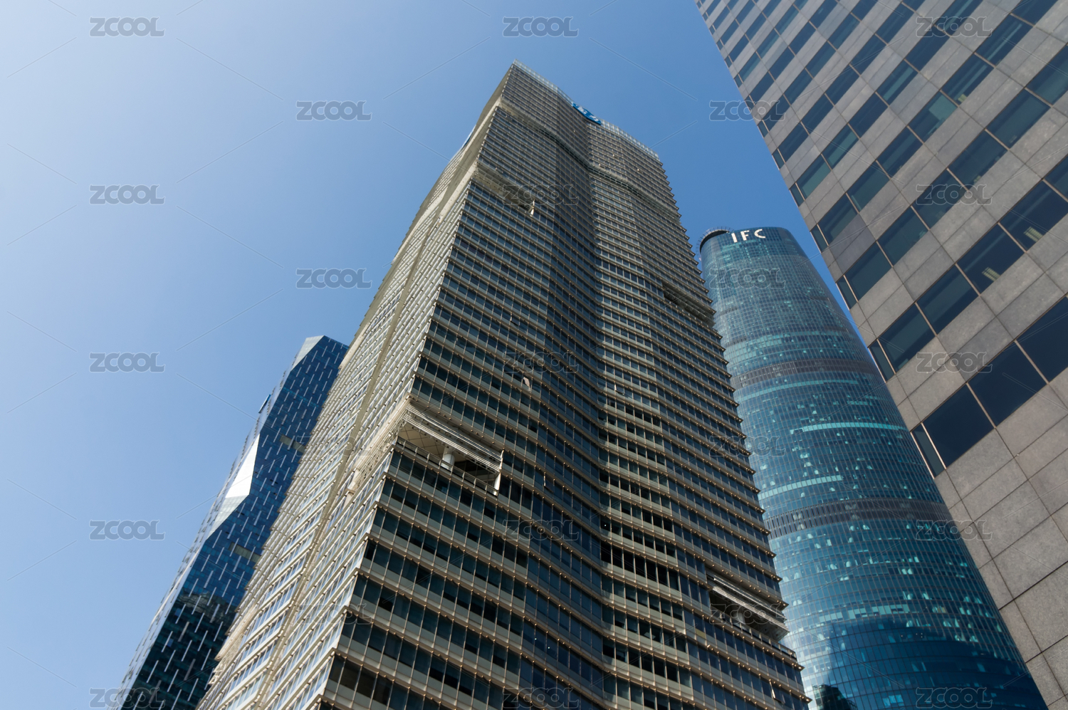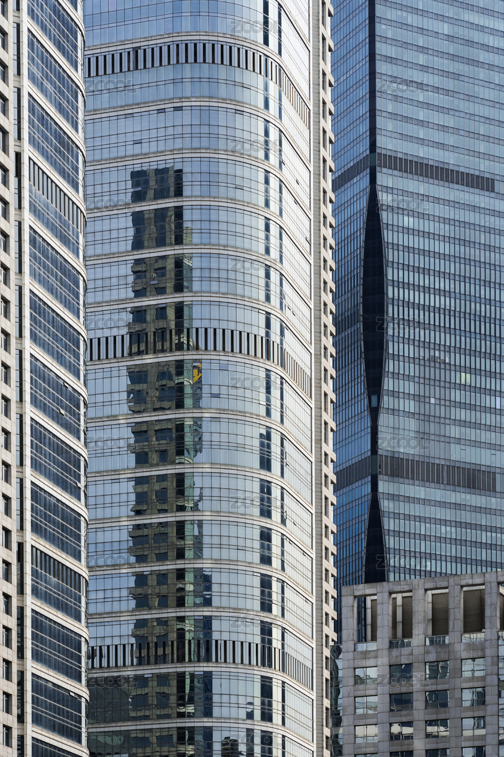 中国上海黄浦江外滩摩天大楼建筑外墙立面特写