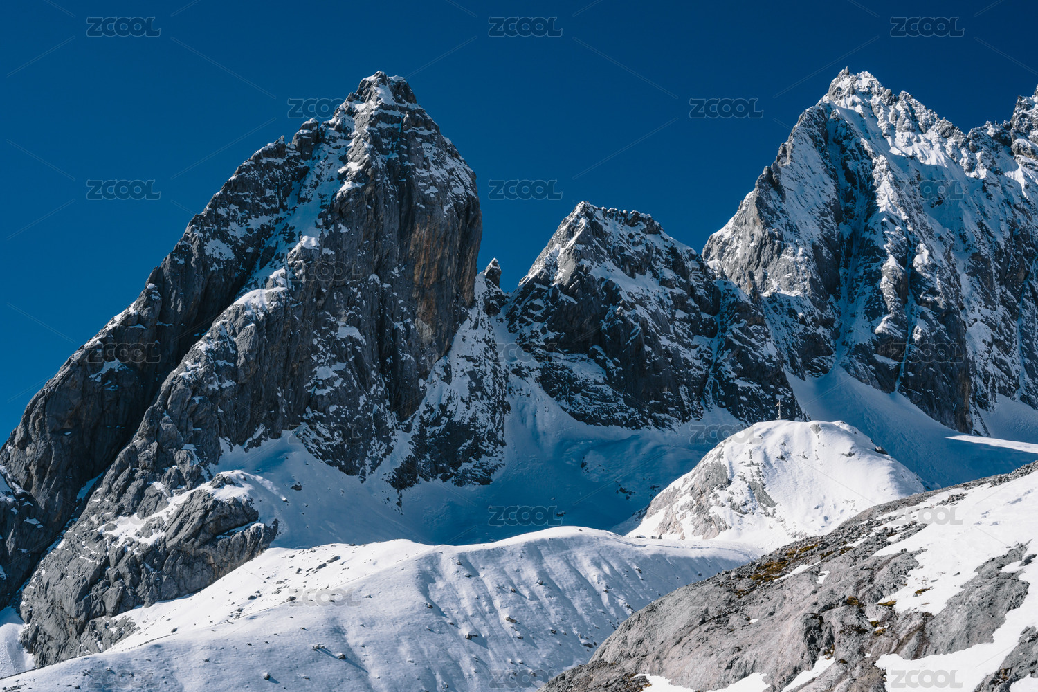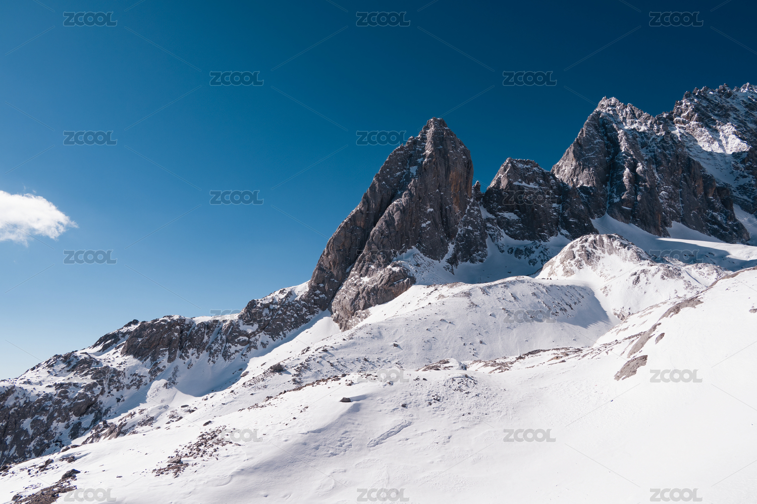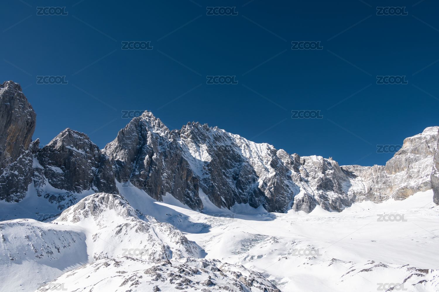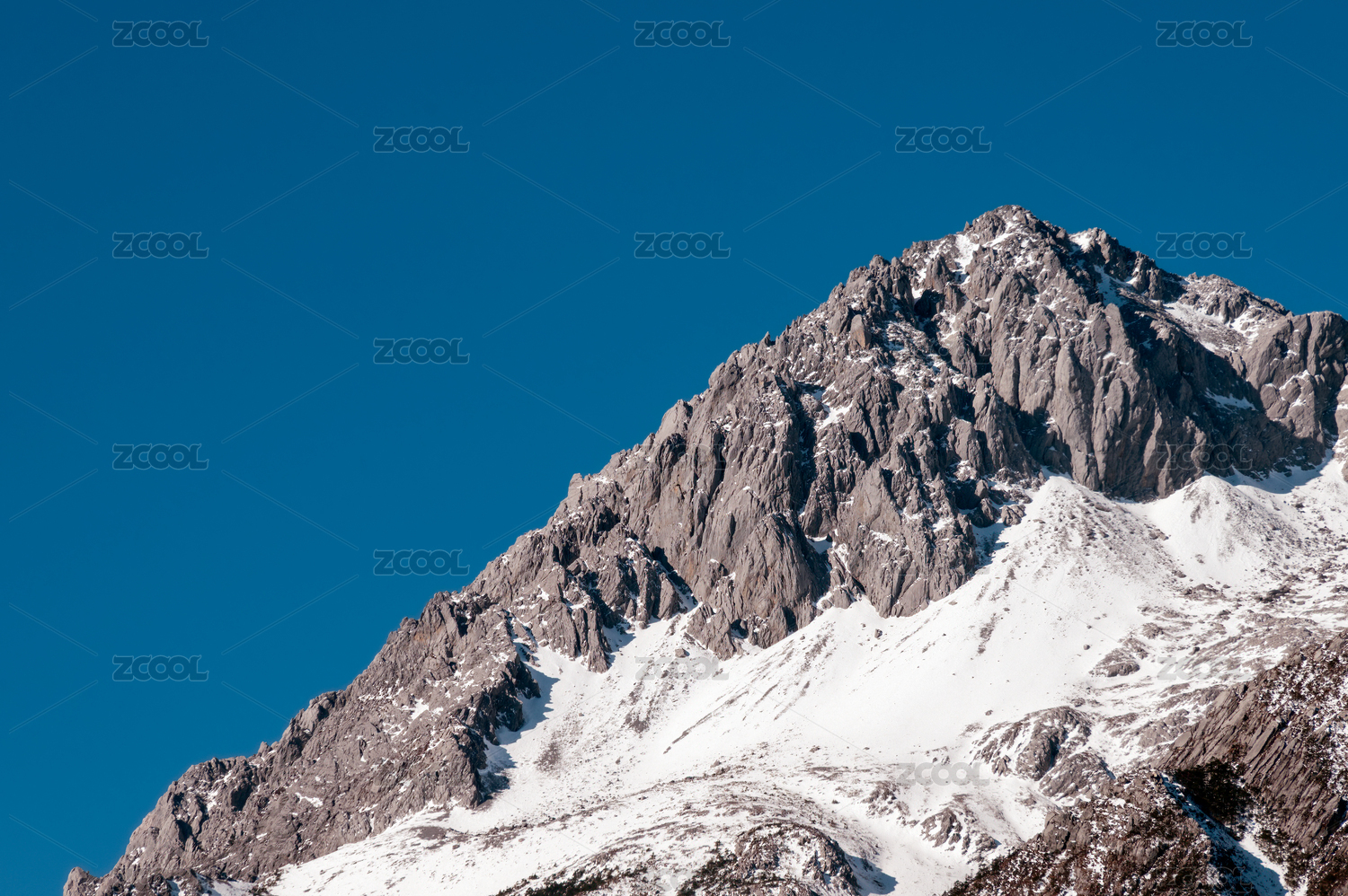 纯净蓝天下云南丽江玉龙雪山局部特写