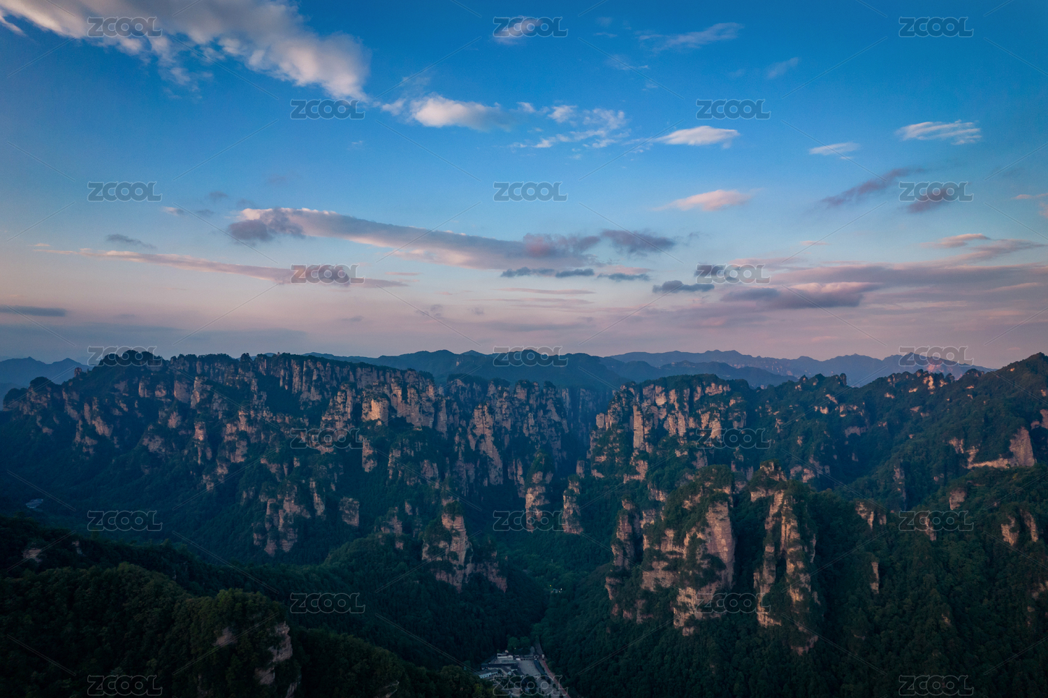 晚霞中的湖南张家界武陵源黄石寨航拍