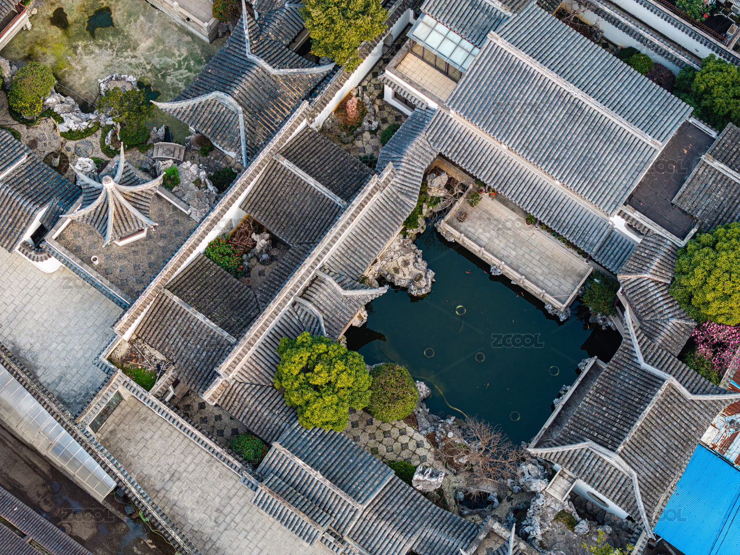 中国江苏淮安河下古镇沈坤状元府景区航拍