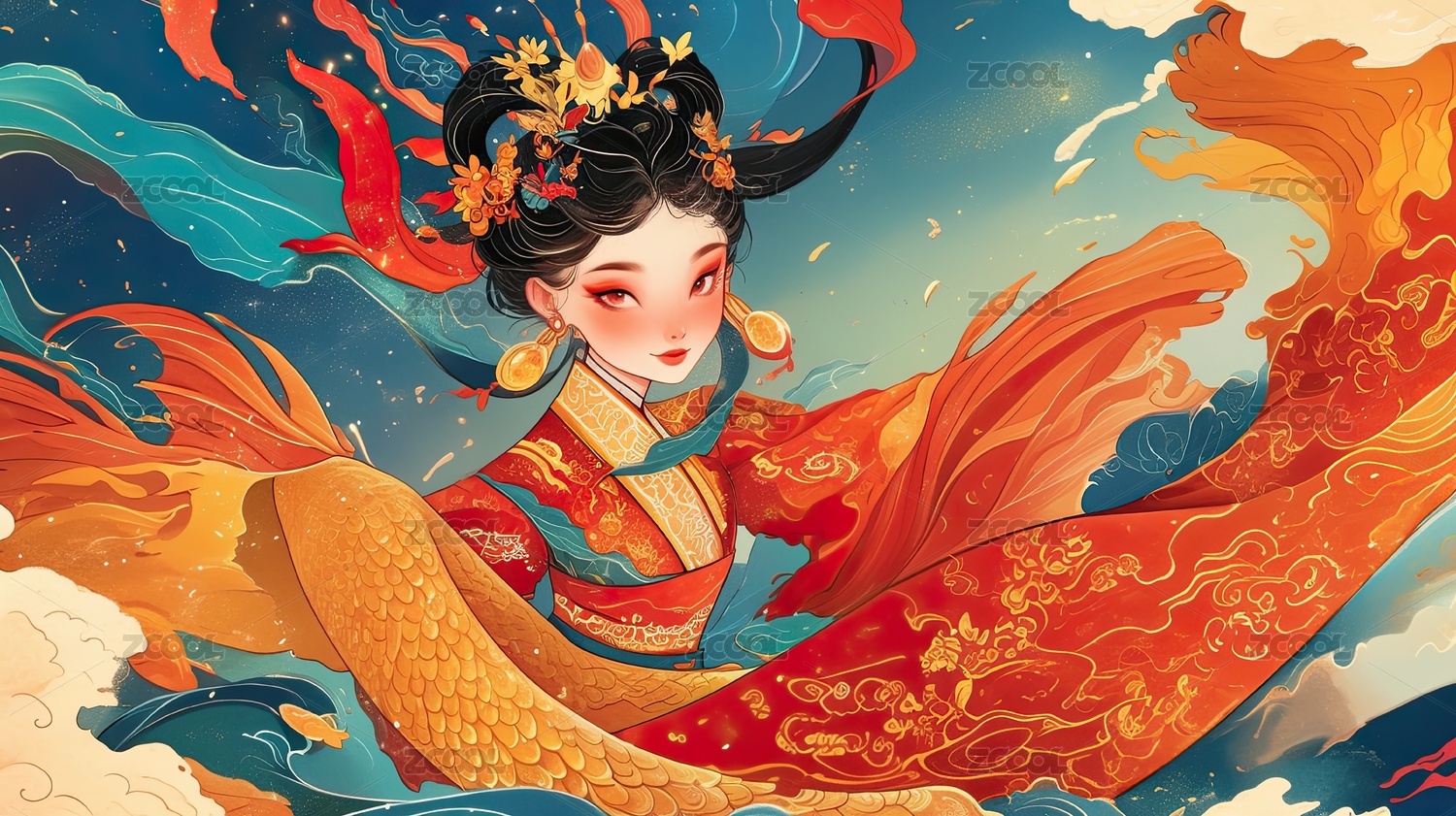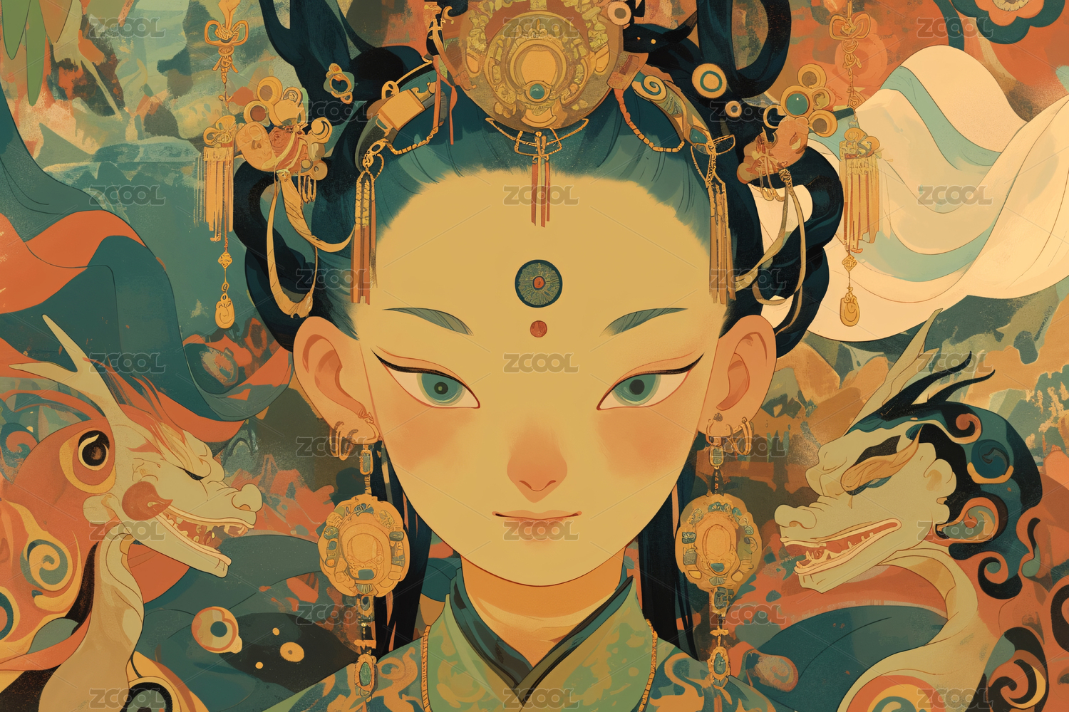 中国风敦煌飞天人物插画,国潮节日艺术创意