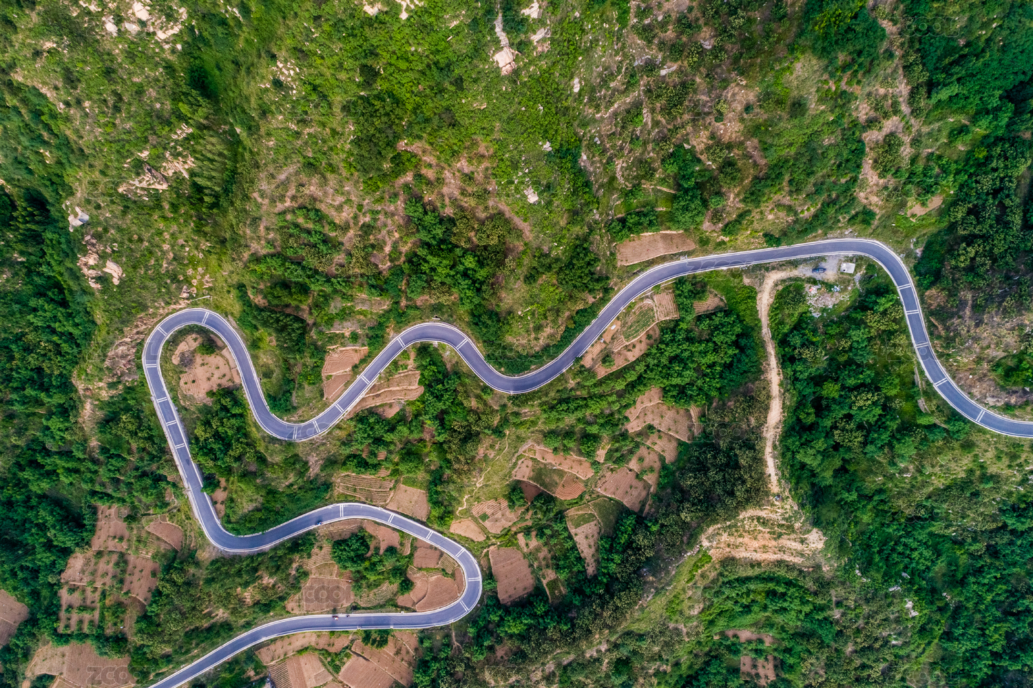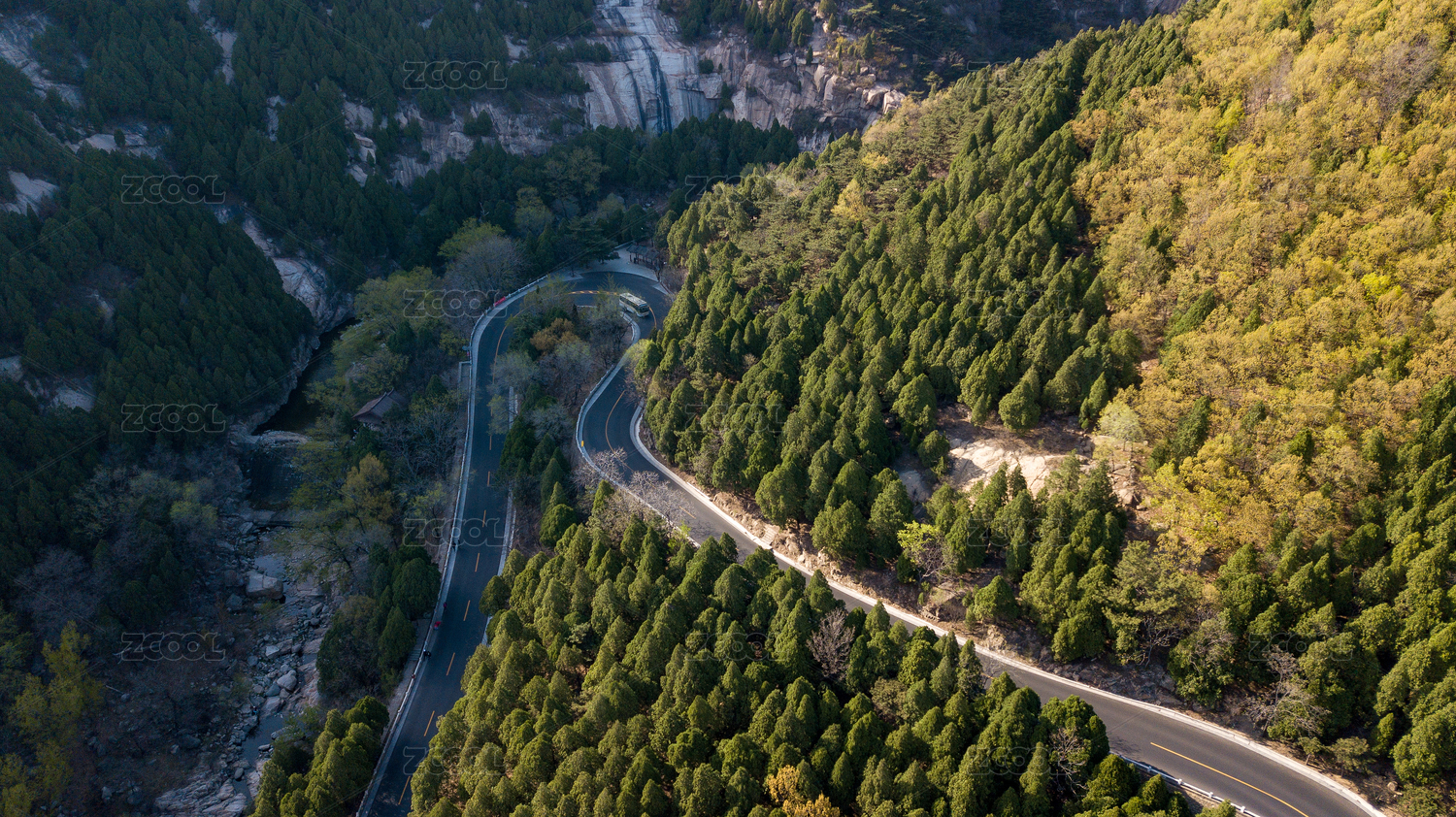 航拍,鸟瞰,俯视,上帝视角,大山,山区,桃花峪,泰山,道路,河床