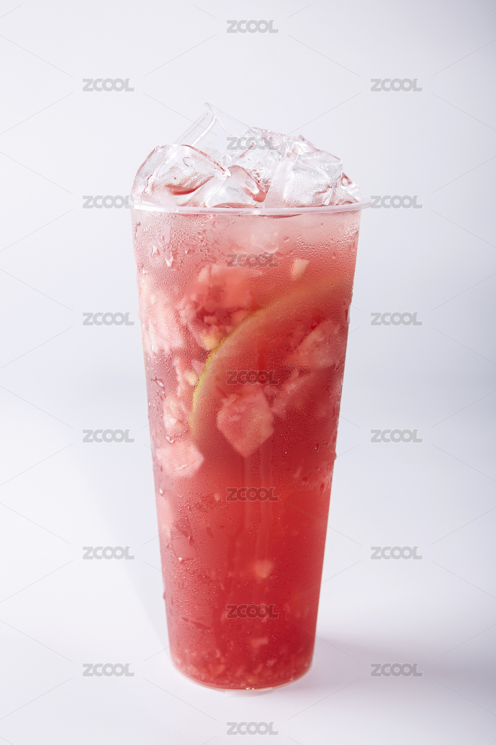 一杯西瓜草莓汁放在桌面上