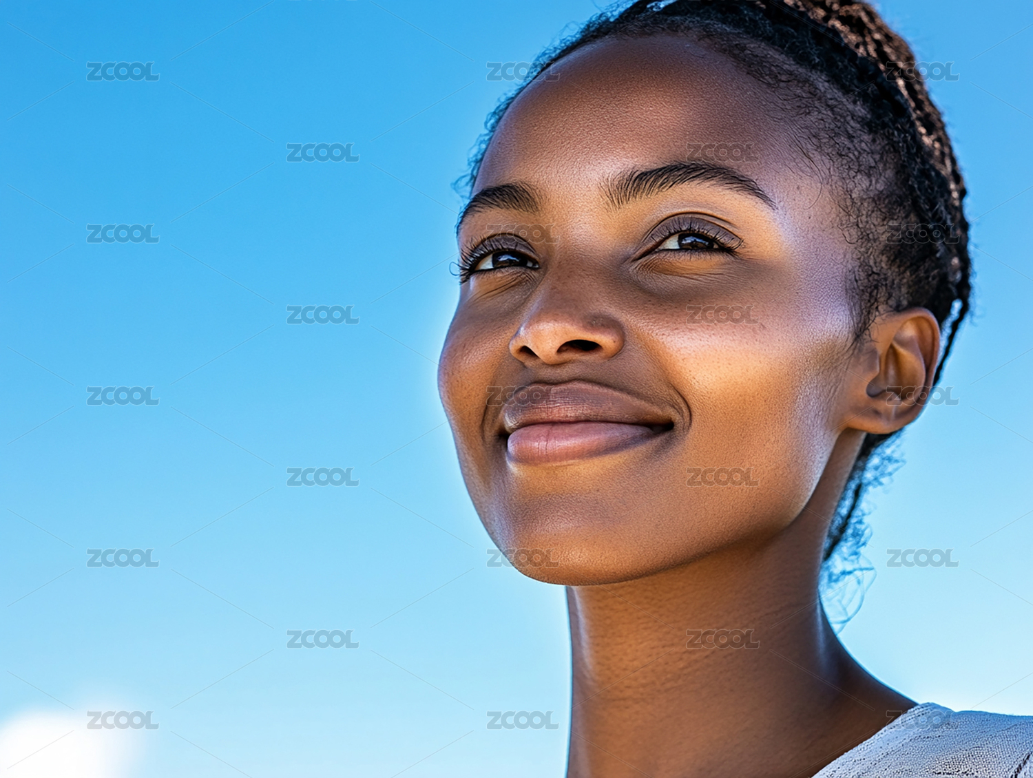 美女在蓝天背景下的特写照片