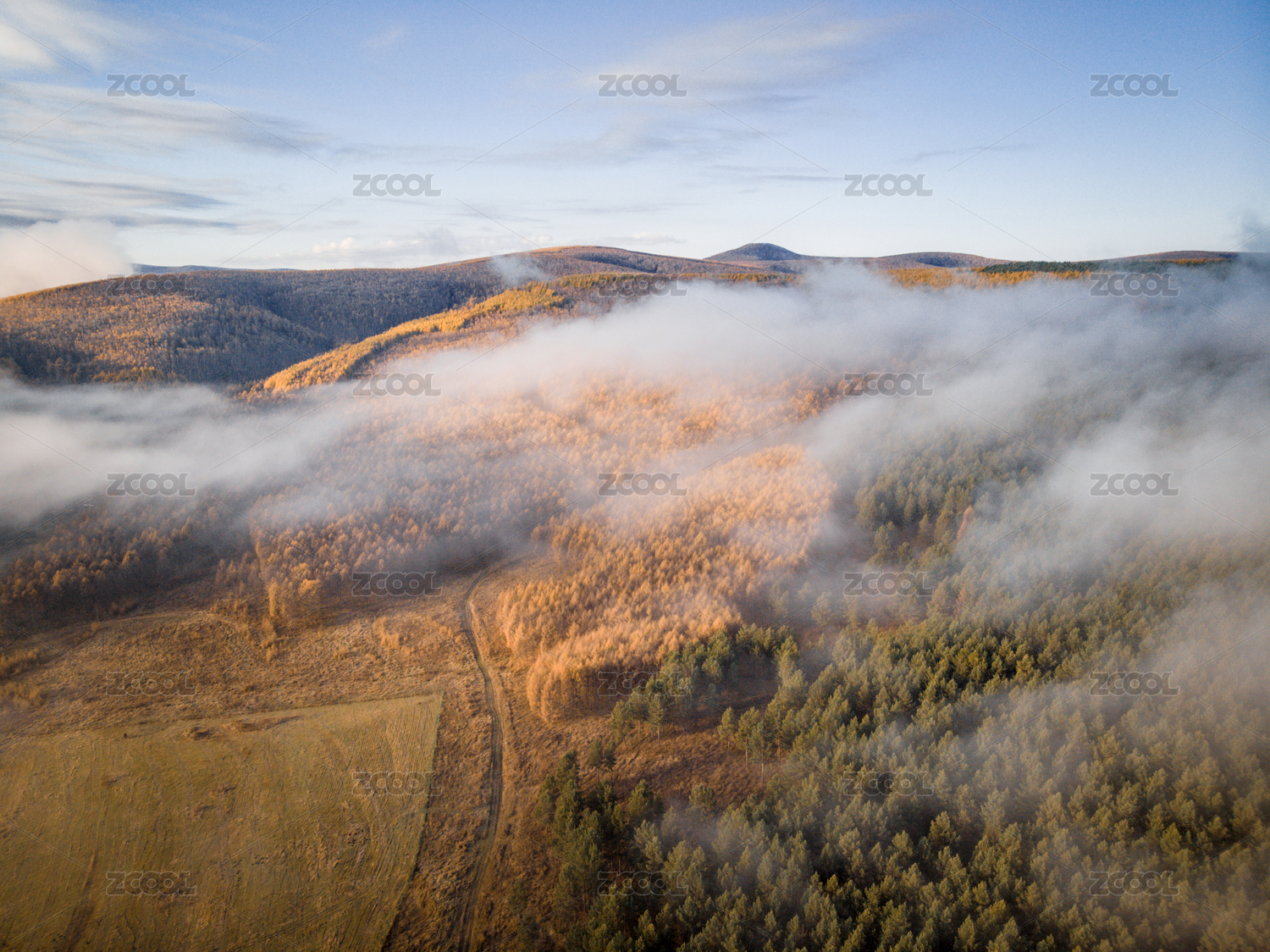 山峦,雾气,树林,同心天池,晨雾,秋景,柴河风光