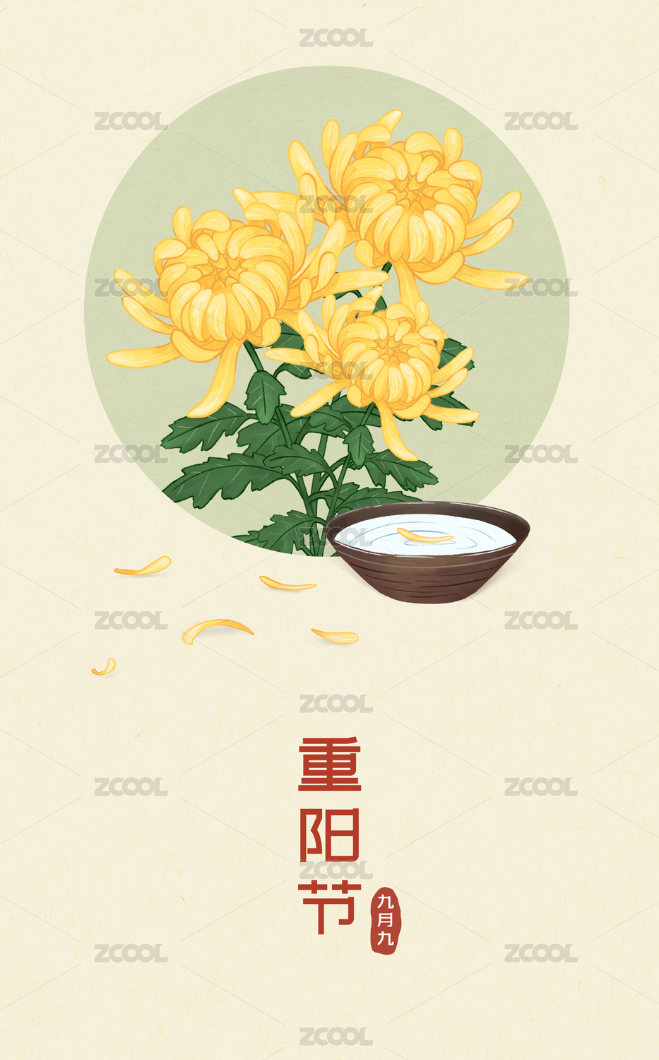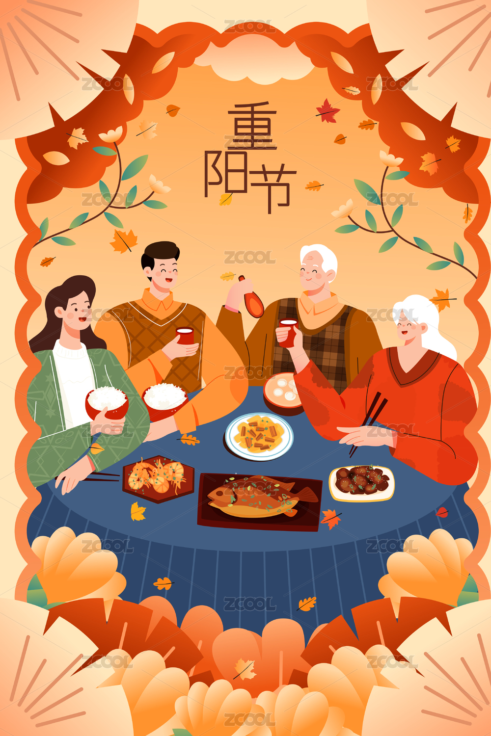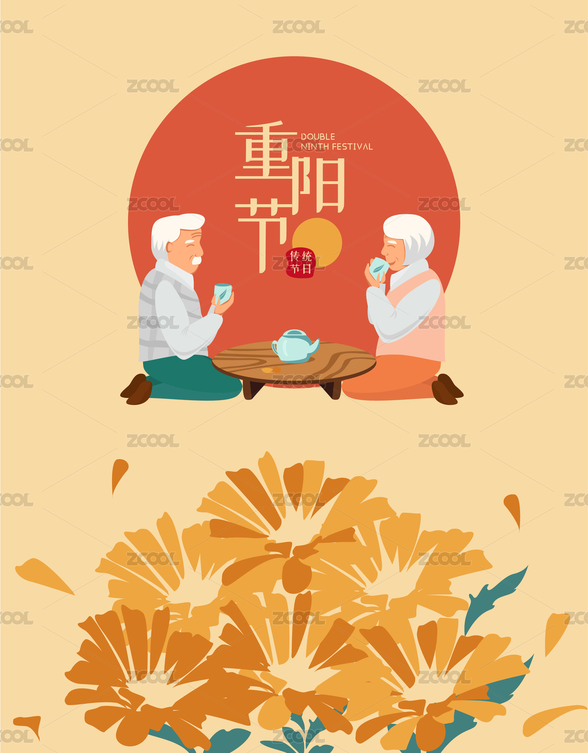 插画,生活,重阳节,传统,老人,菊花,茶壶,节日,喝茶