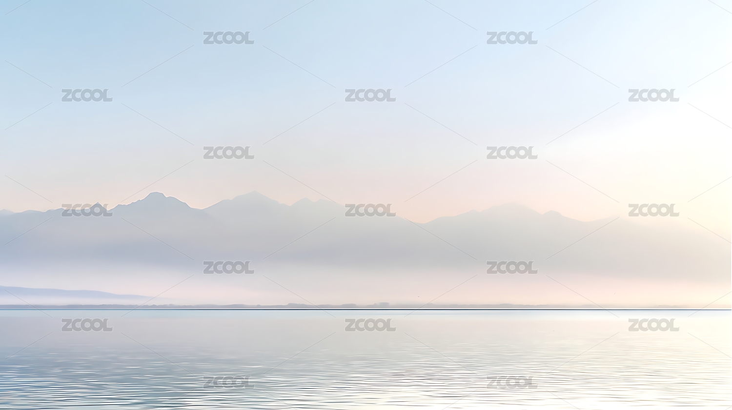 平静湖面与远山的清晨景色