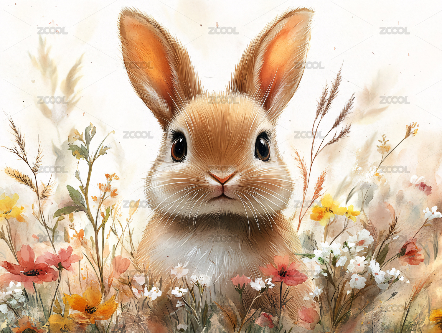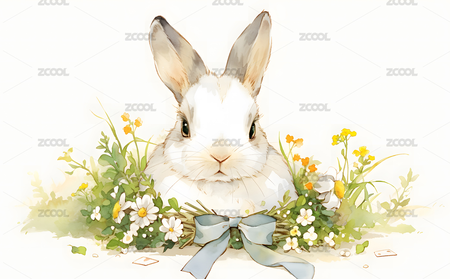 兔子彩色花卉插图装饰复活节快乐贺卡