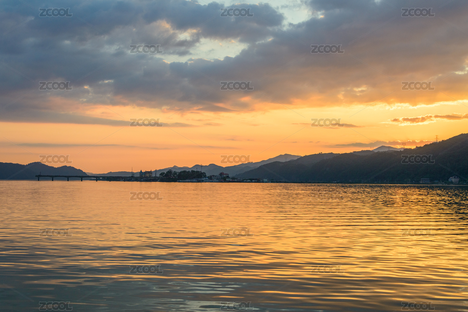 辽宁丹东鸭绿江河口断桥景区日落景色