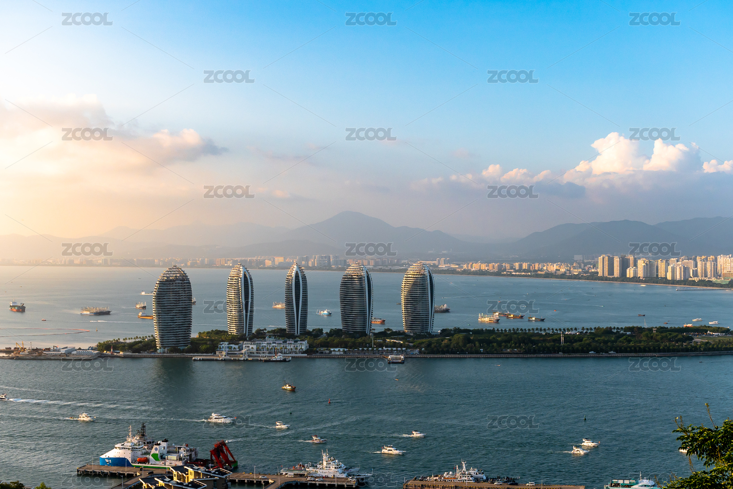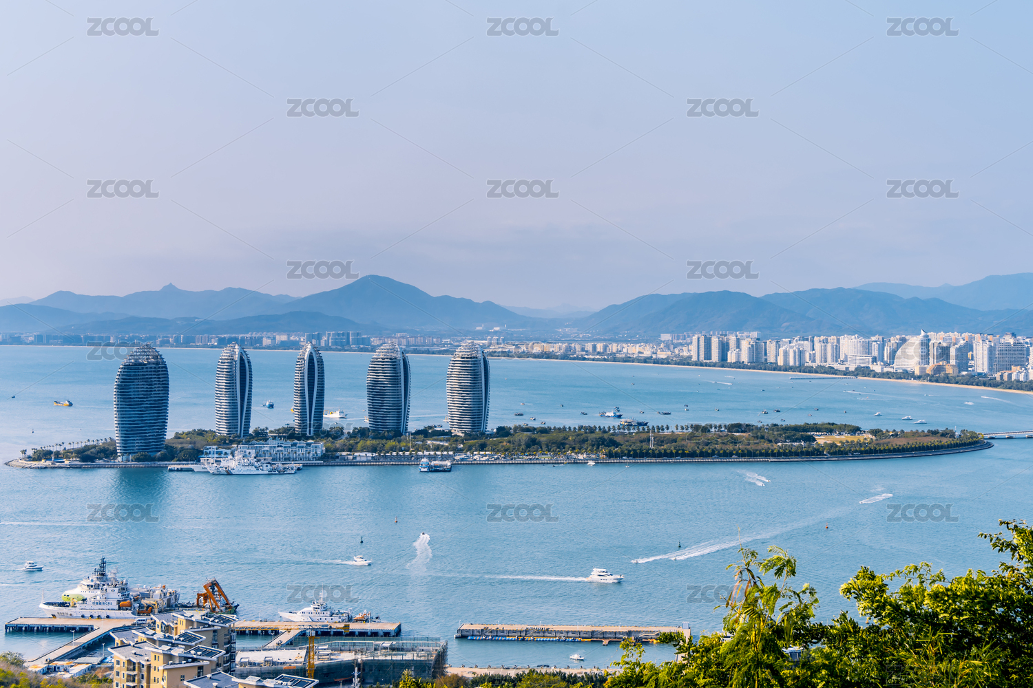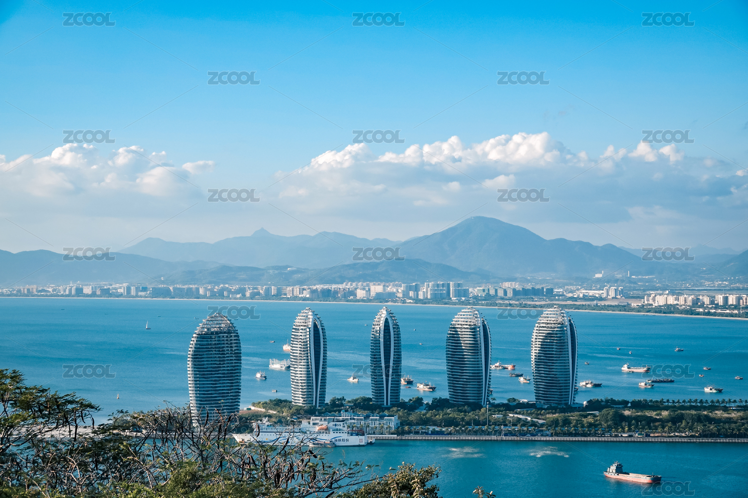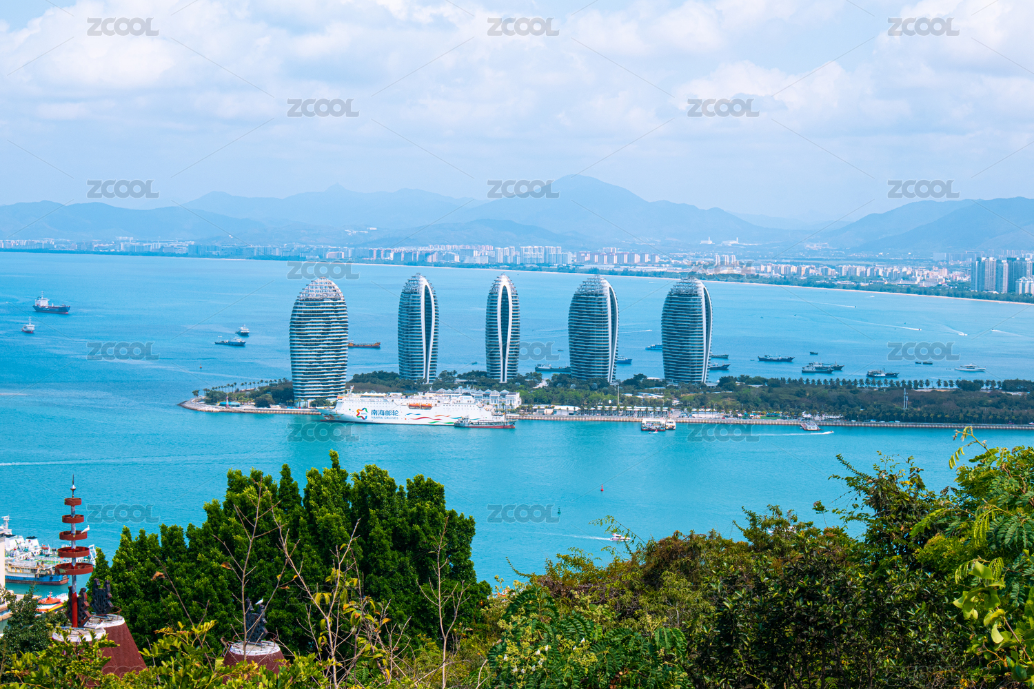 海南三亚鹿回头风景区俯瞰帆船酒店
