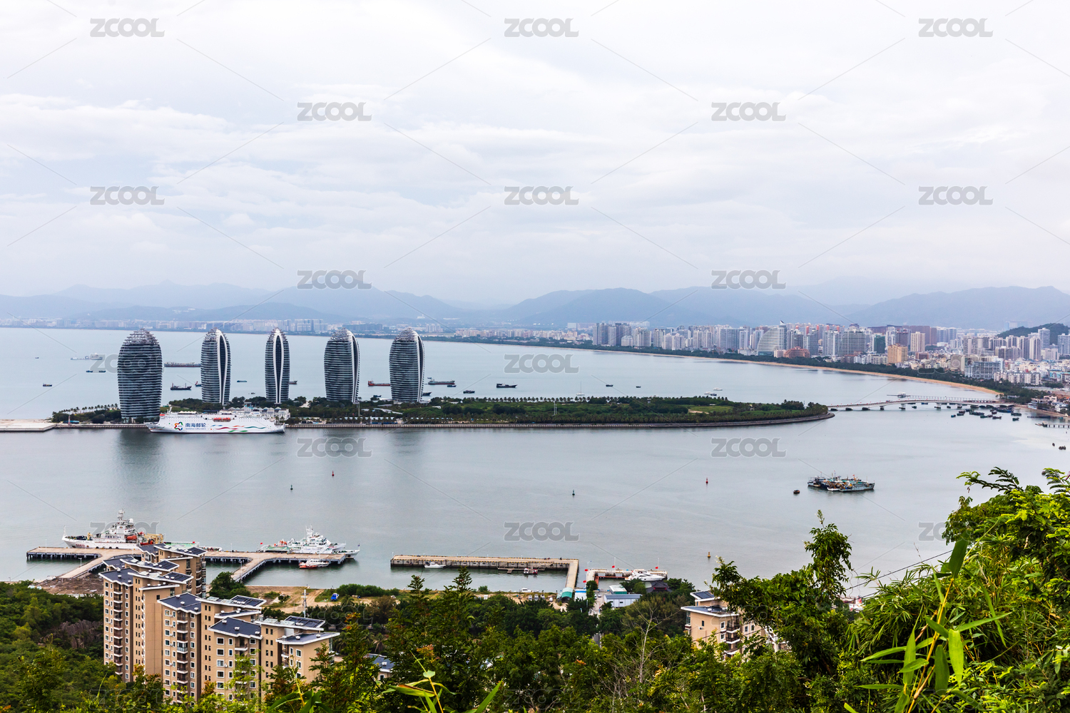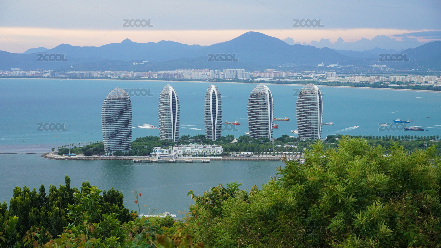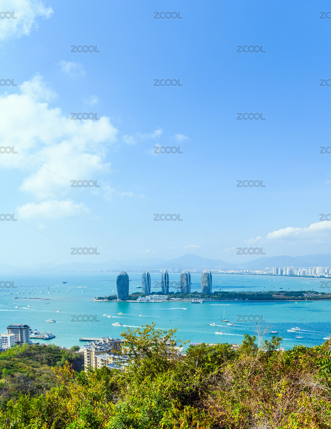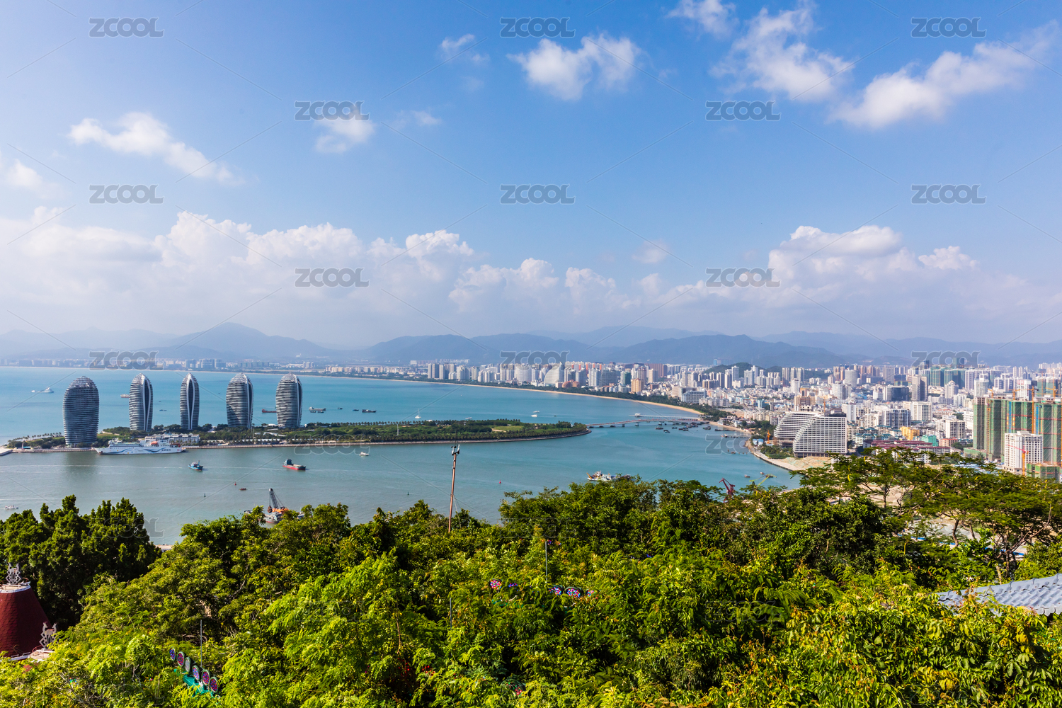海南著名景点鹿回头山顶俯瞰海岸海湾城市