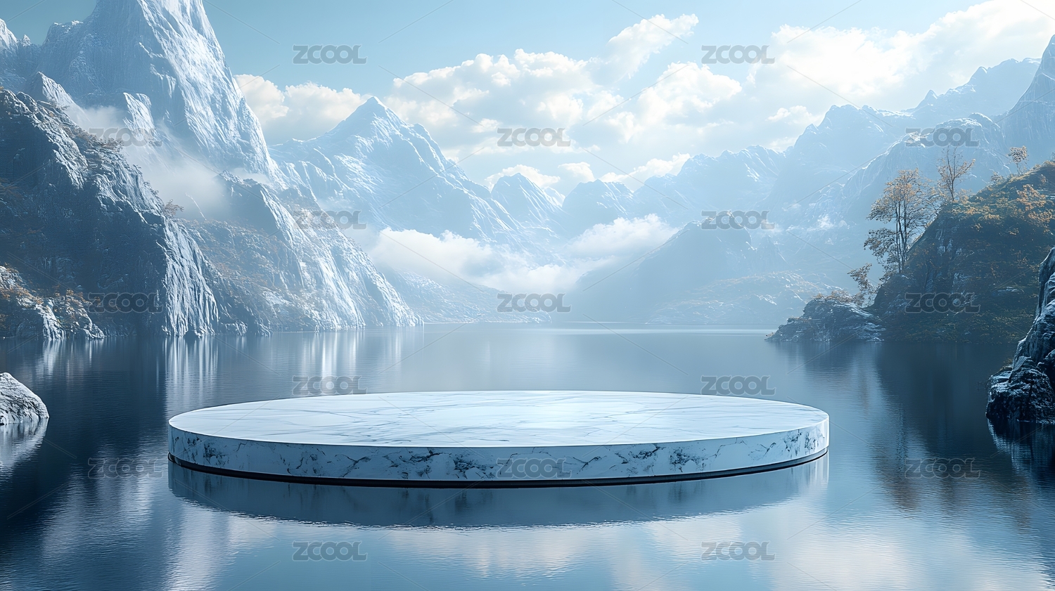 展台,电商,产品,雪山,湖水,森林,倒影,自然,天然,风景