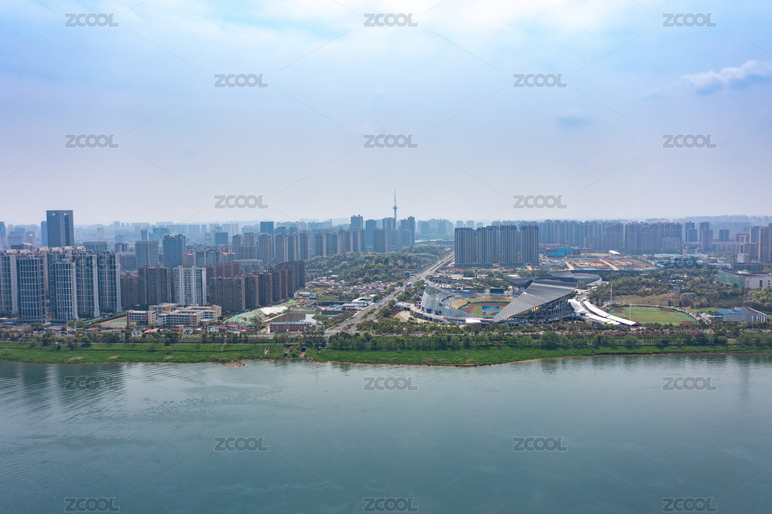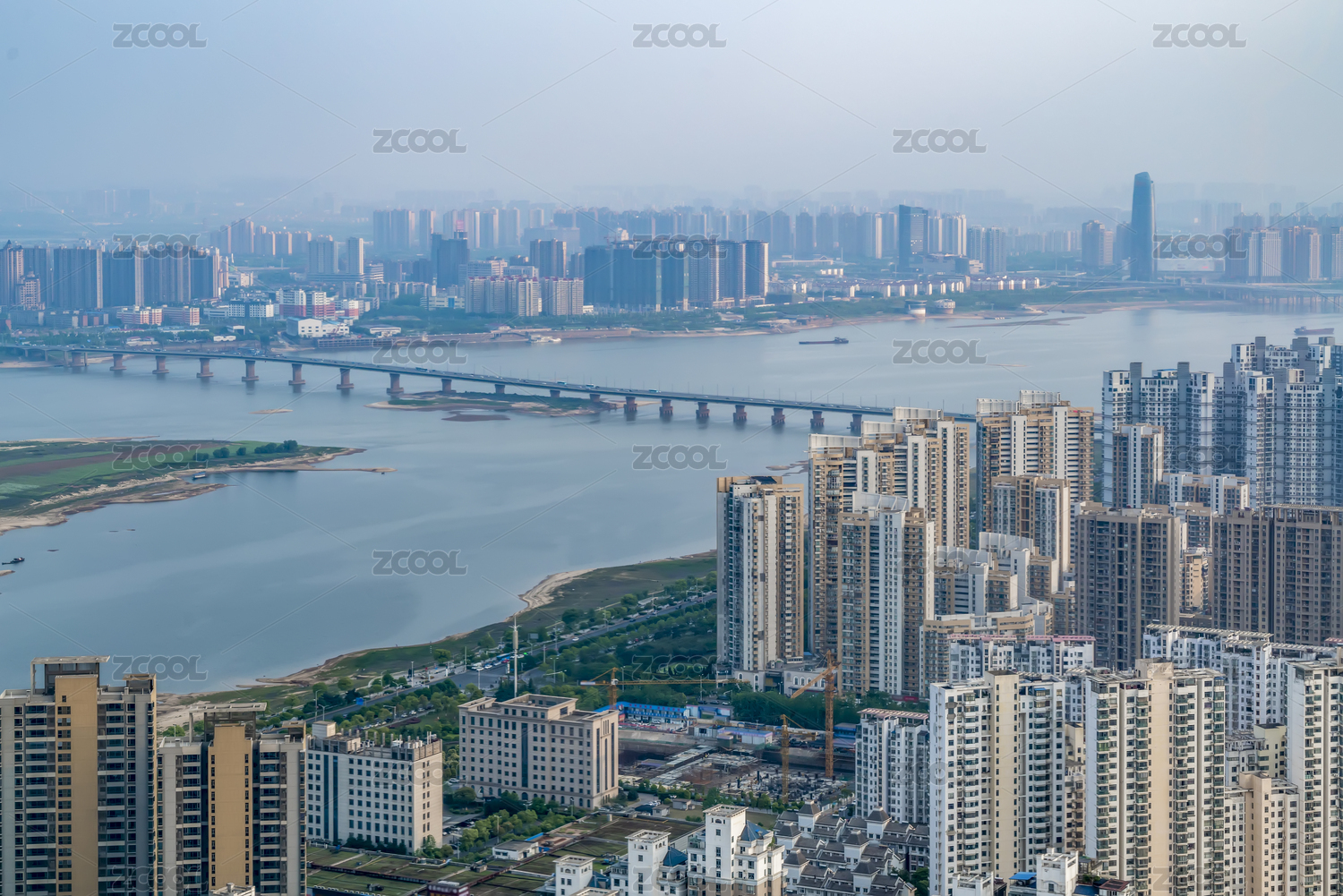 中国广东省清远市北江两岸建筑桥梁航拍景观