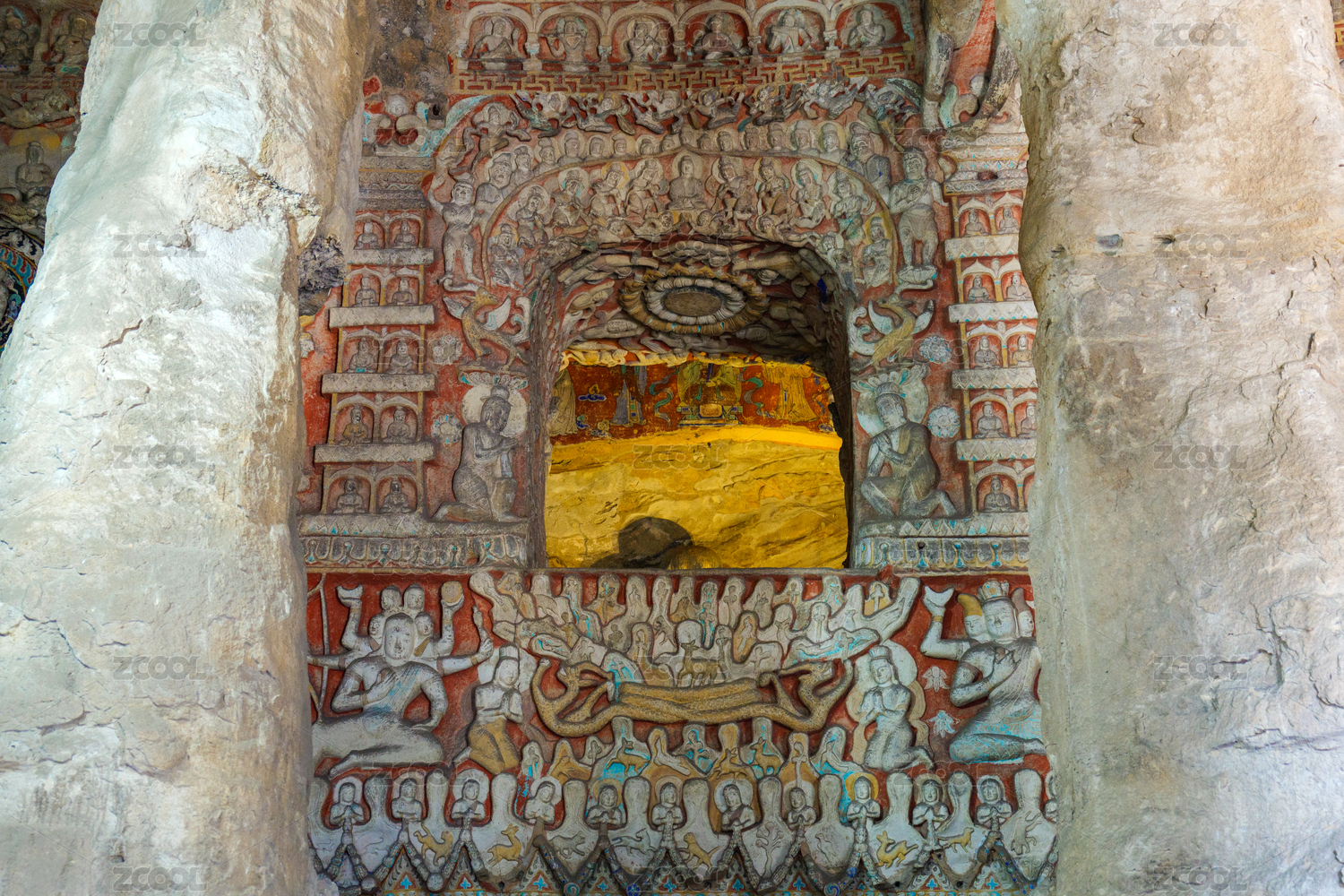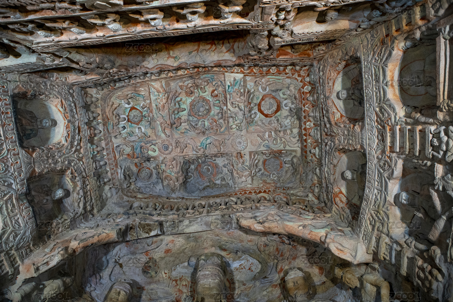 山西云冈石窟内部雕刻特写