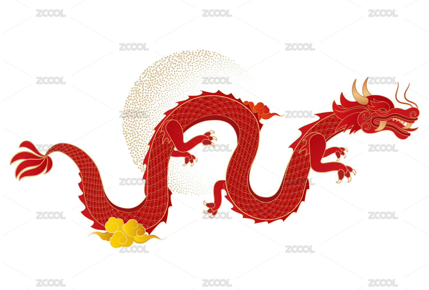 矢量红色龙年游龙祥龙插画