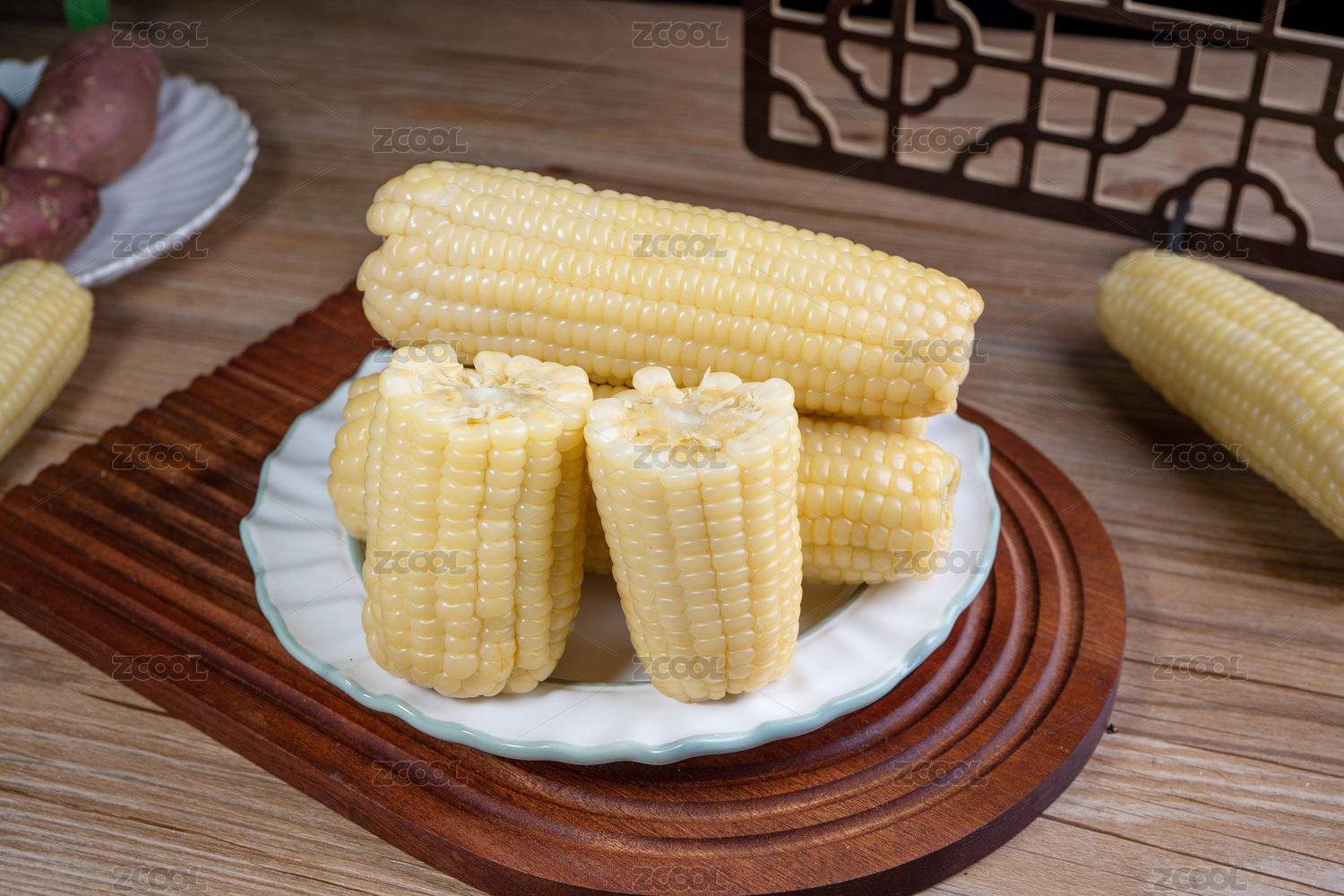 一盘新鲜的玉米