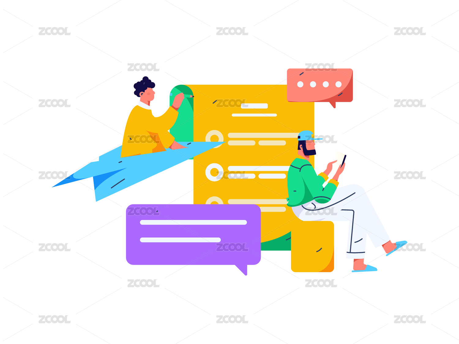 商务人物运营工作场景扁平矢量插画