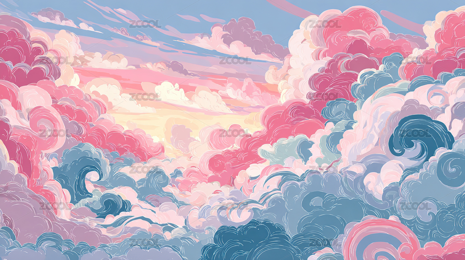 手绘,卡通,艺术感,抽象,彩色,渐变,清新,图片,花纹,图案