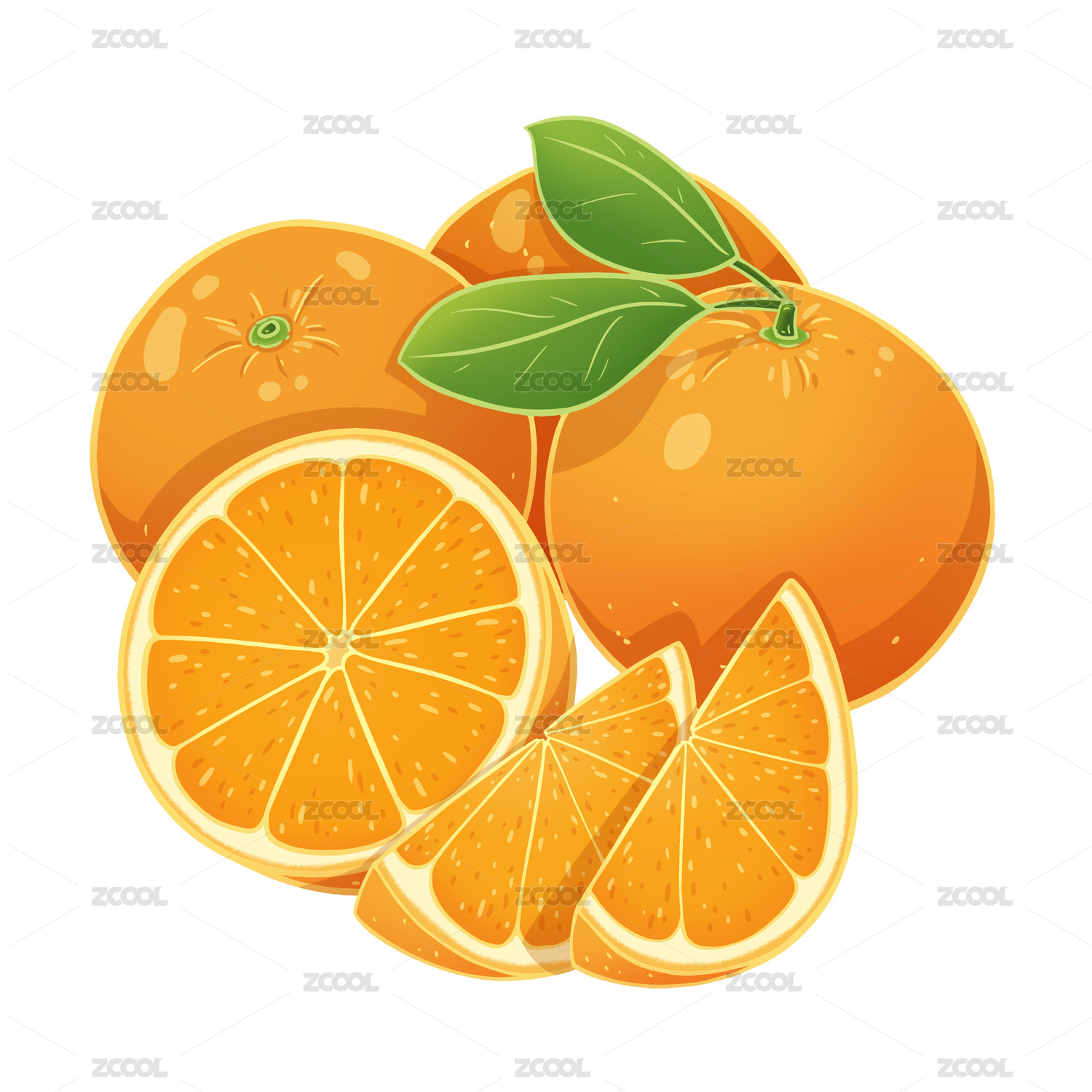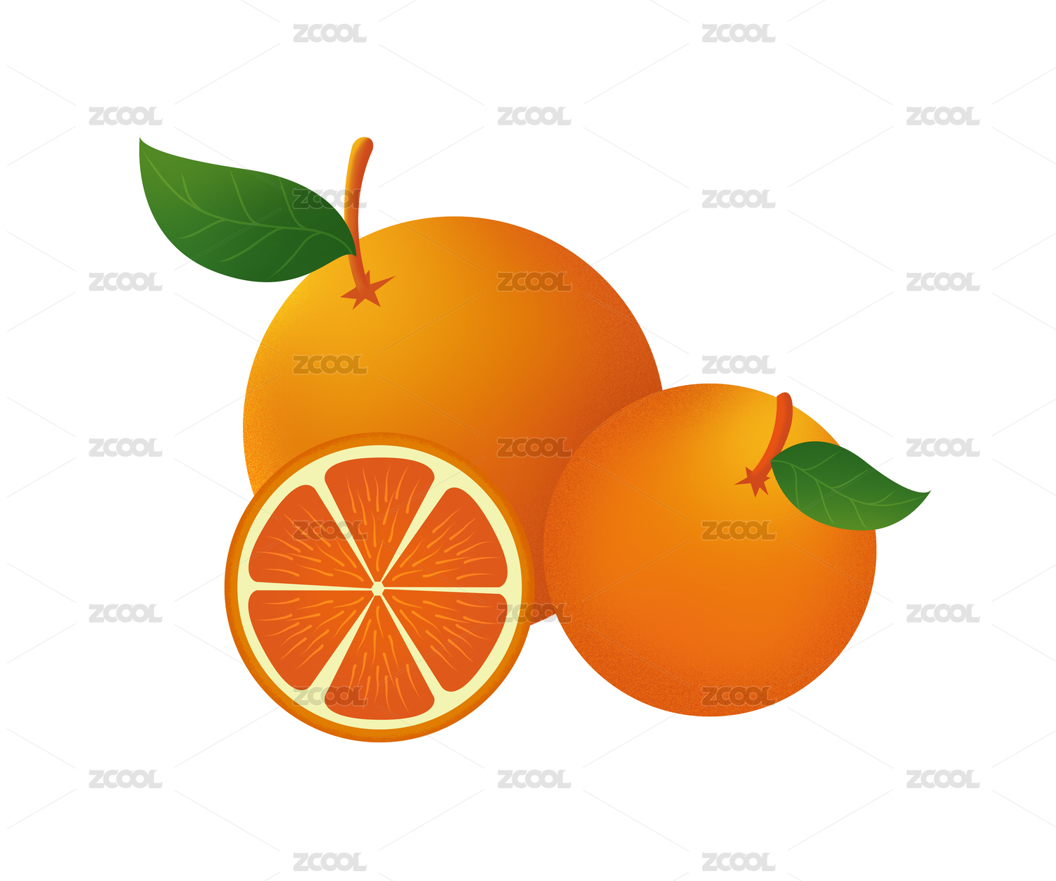 插画风格橙子与切片