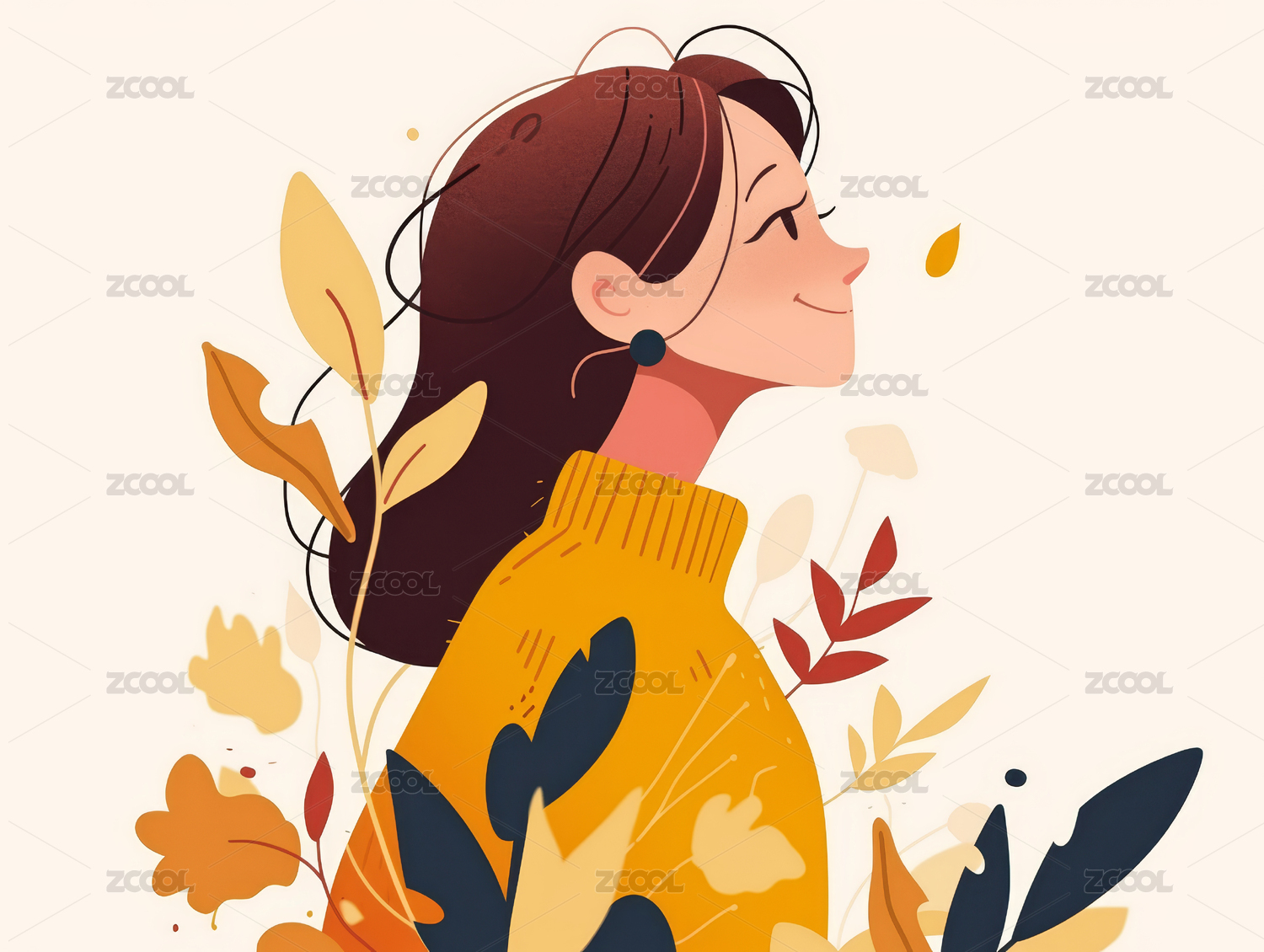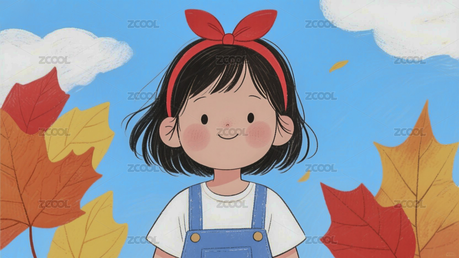 手绘,卡通,可爱,秋天,女孩,插画,季节,唯美,女人,少女