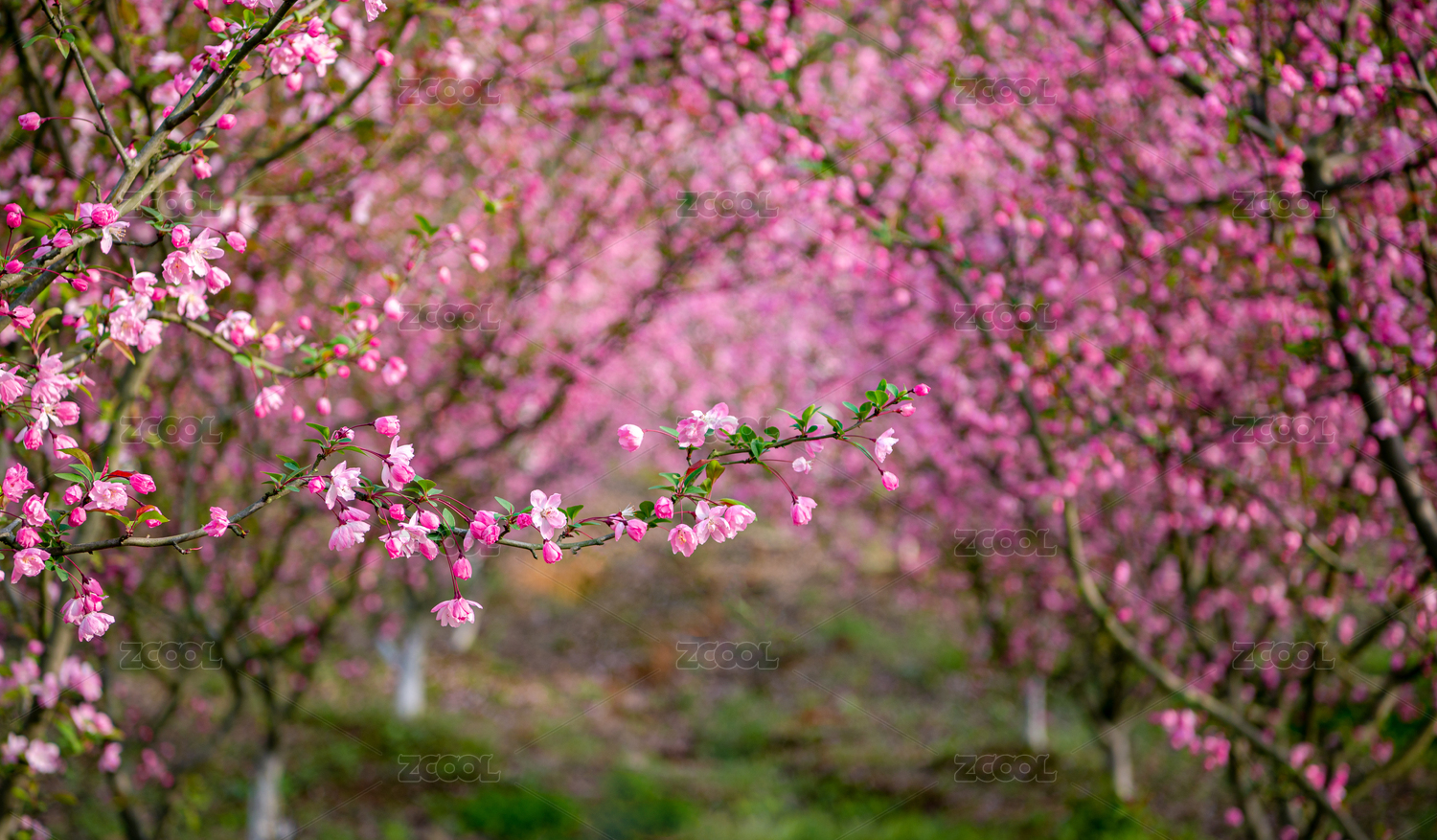 河南郑州植物园春季樱花紫叶李与迎春花小路