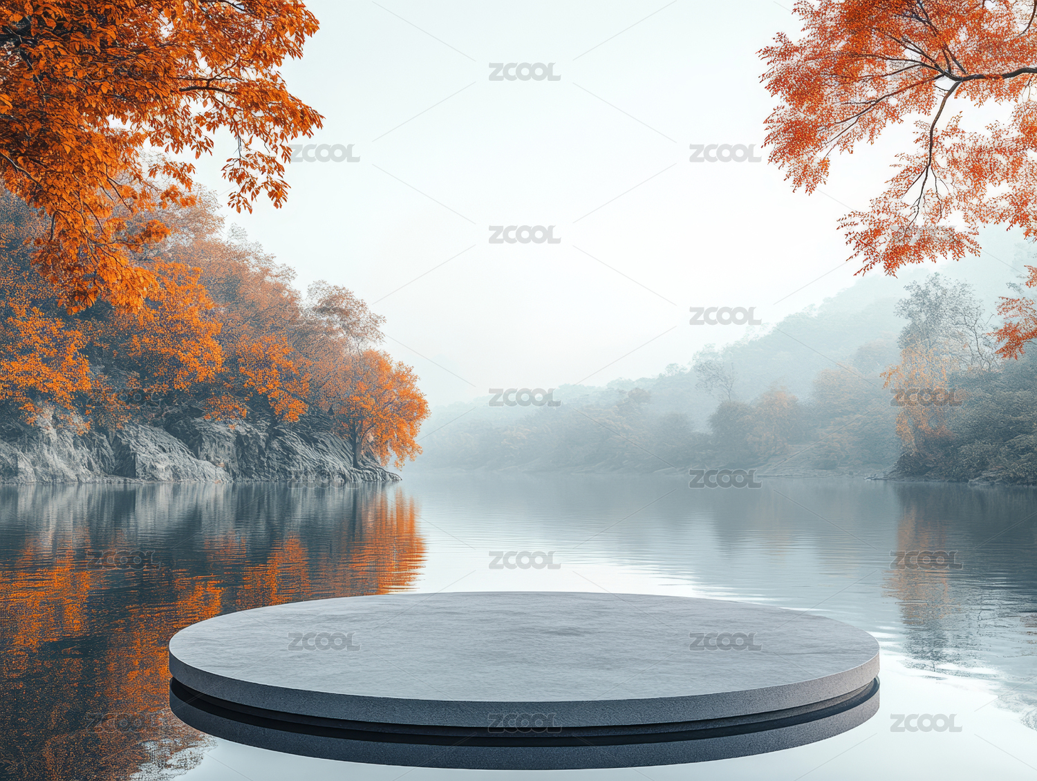 秋天,自然,落叶,黄色,落日,圆形,展示台,舞台,背景,商务