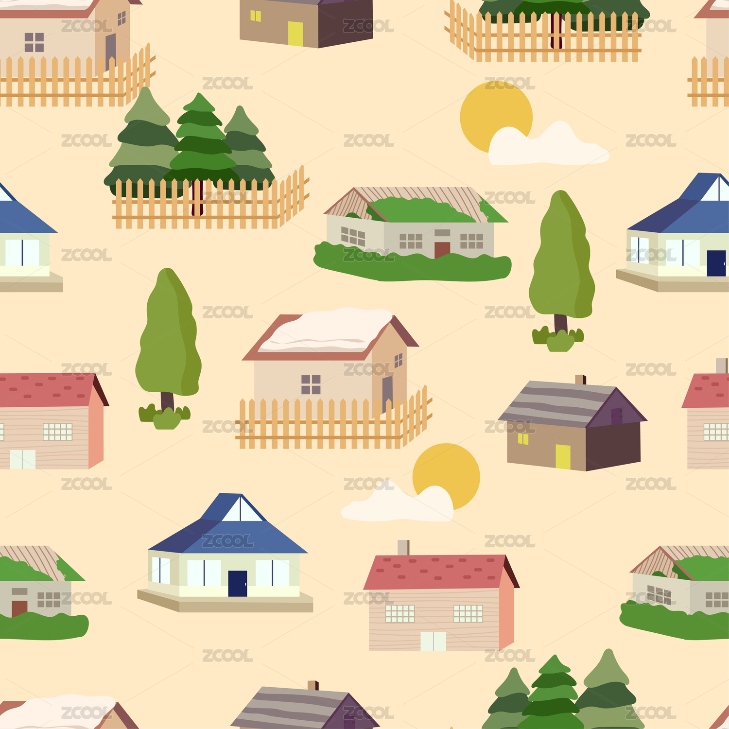 各种色彩小房子系列手绘插画无缝平铺壁纸