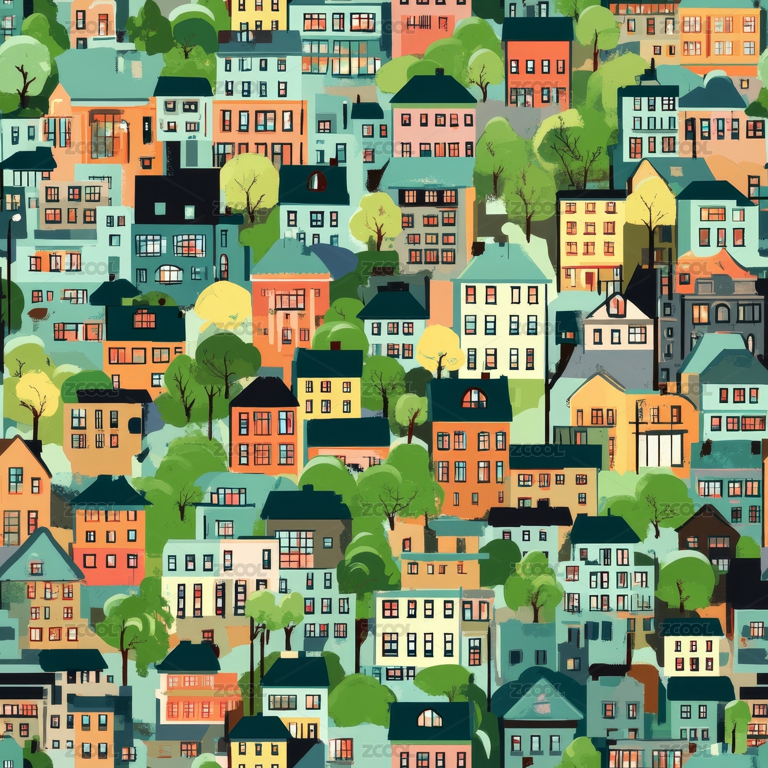 无缝,图案,印花,色彩,布料,印刷,打印,房子,小镇,城市