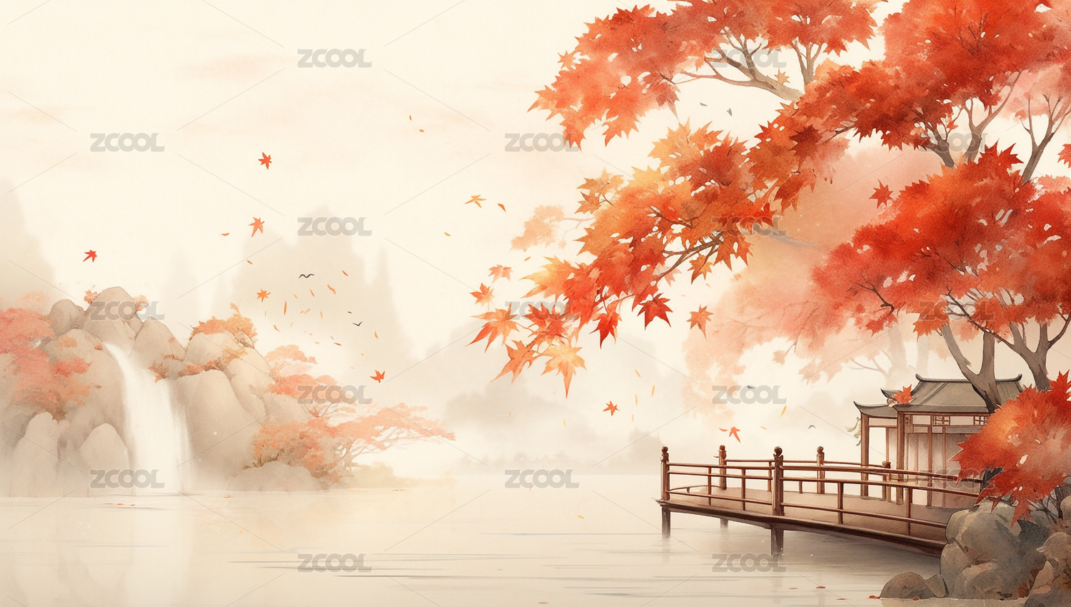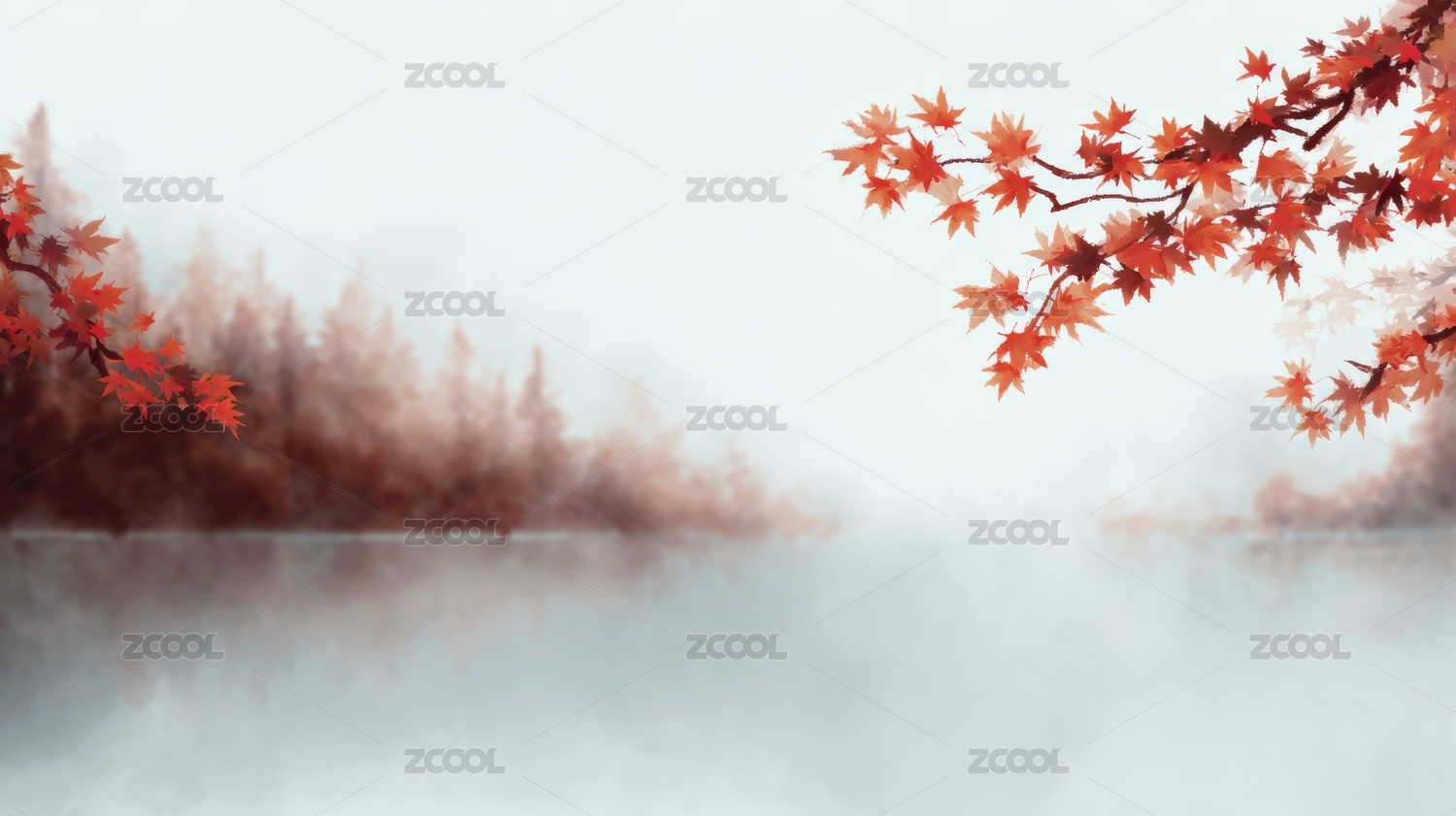 枫叶淡色背景水墨中国风