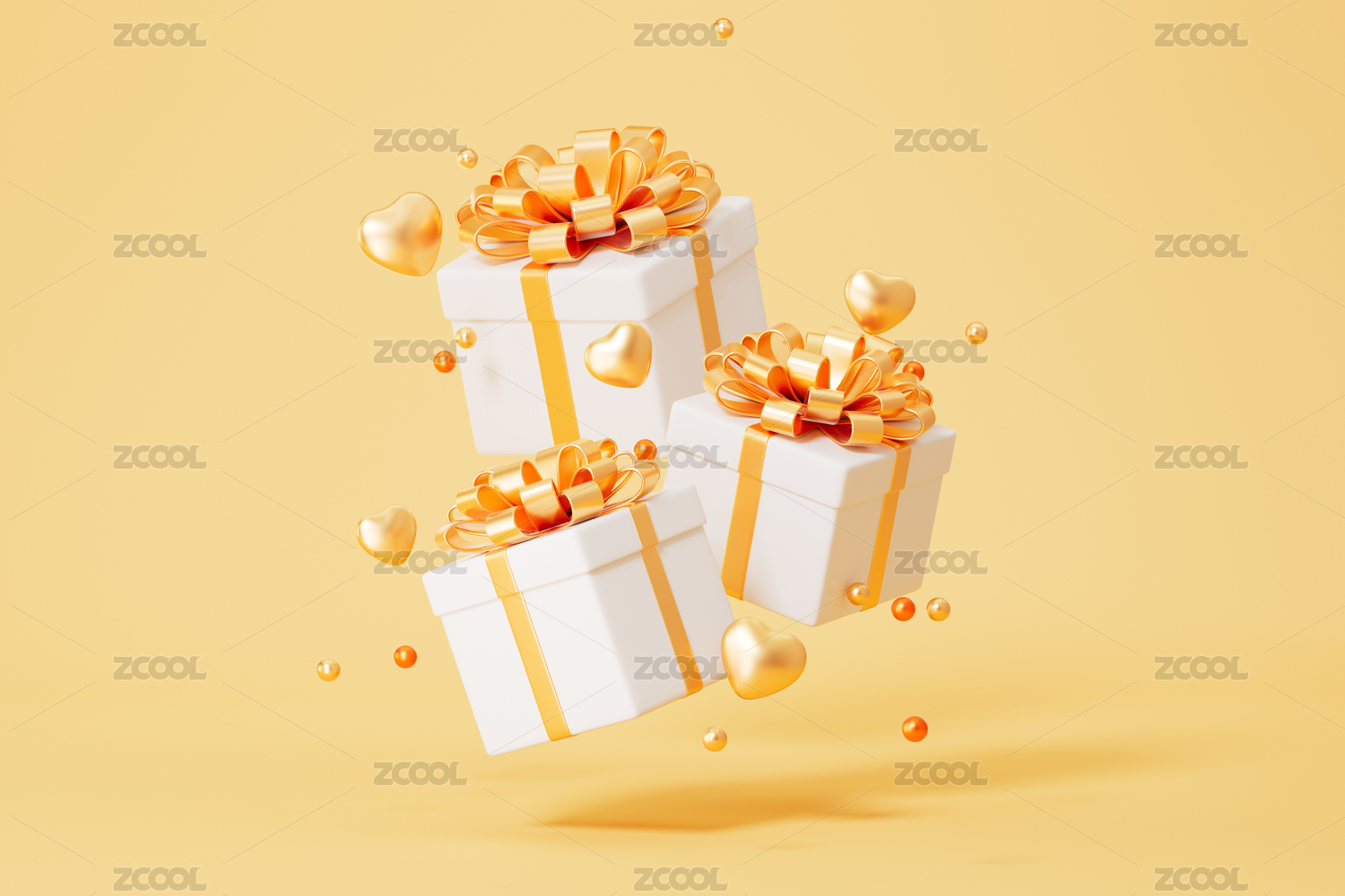 3D渲染的黄色背景下的节日礼盒