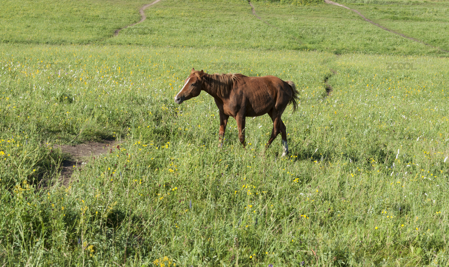 徜徉在内蒙古乌兰布统草原上的一匹马