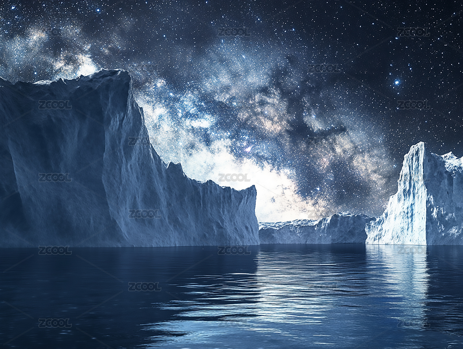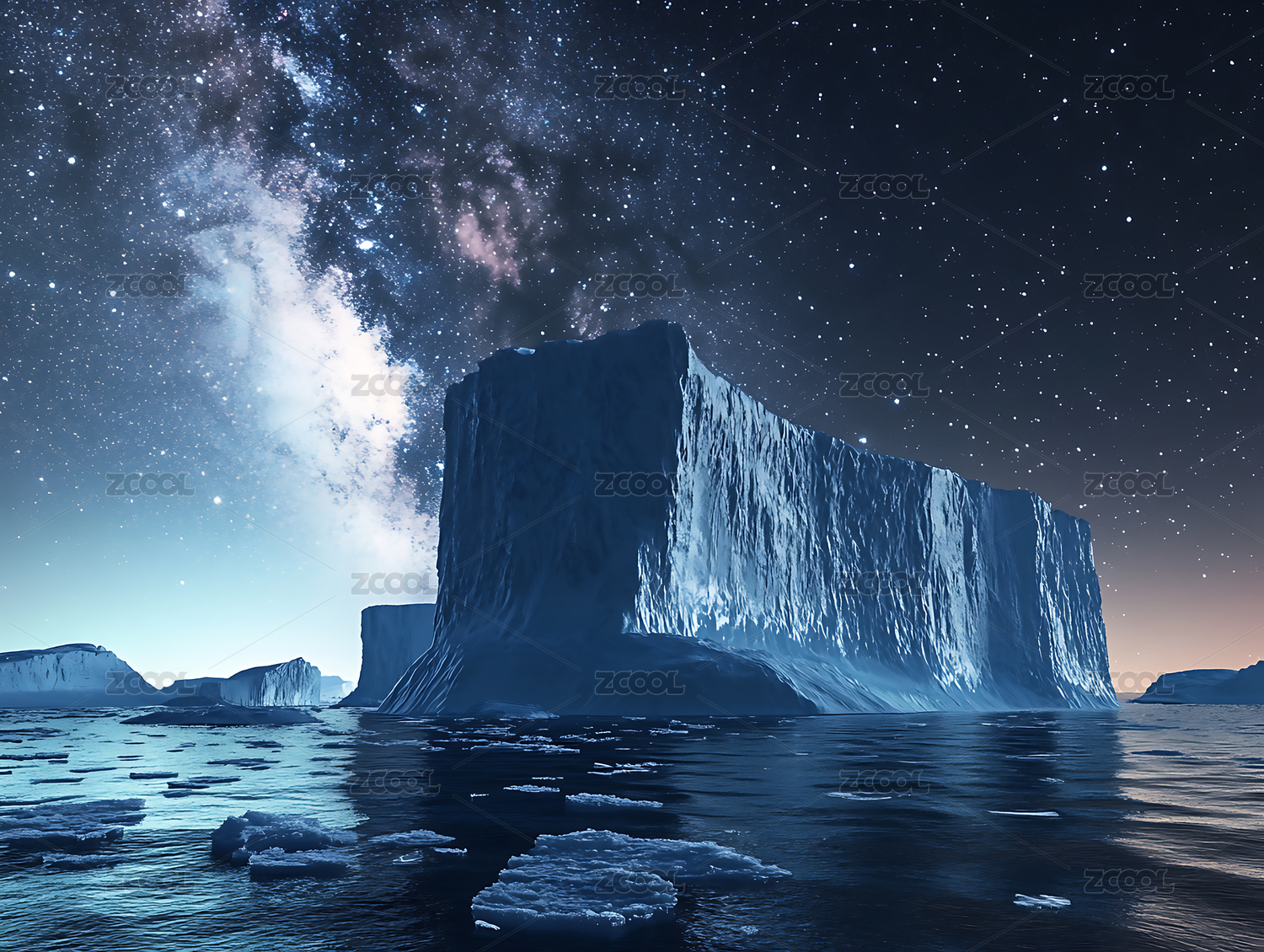 银河,冰山,海面,北极,南极,寒冷,夜晚,背景,自然,地理