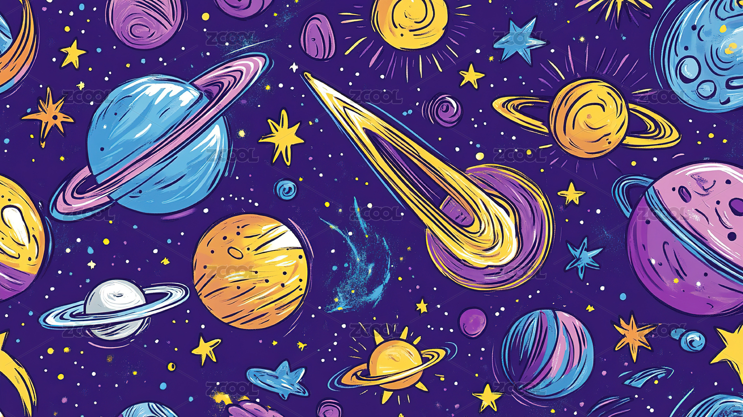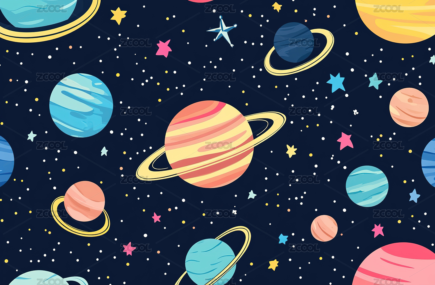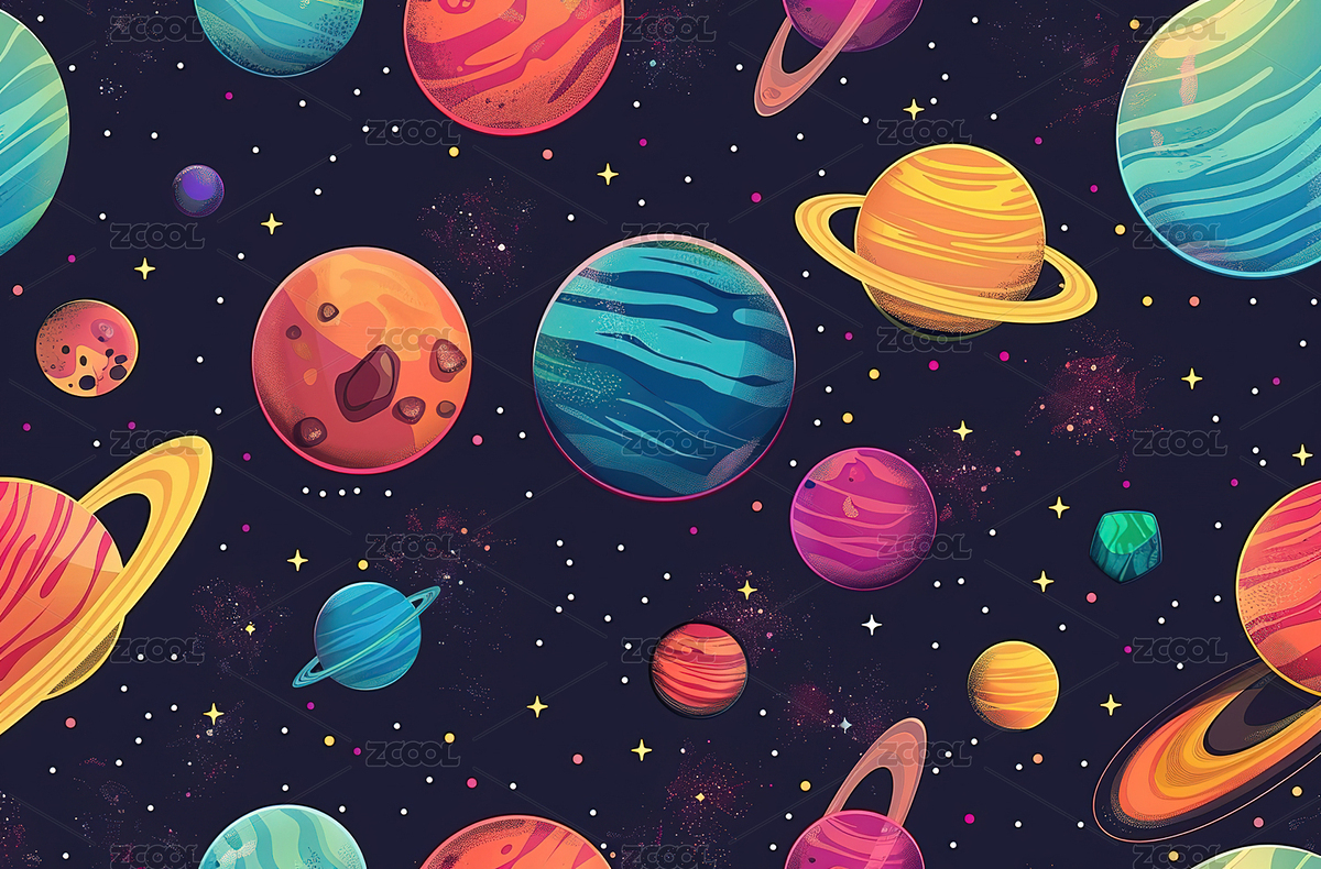 卡通多彩行星星球背景