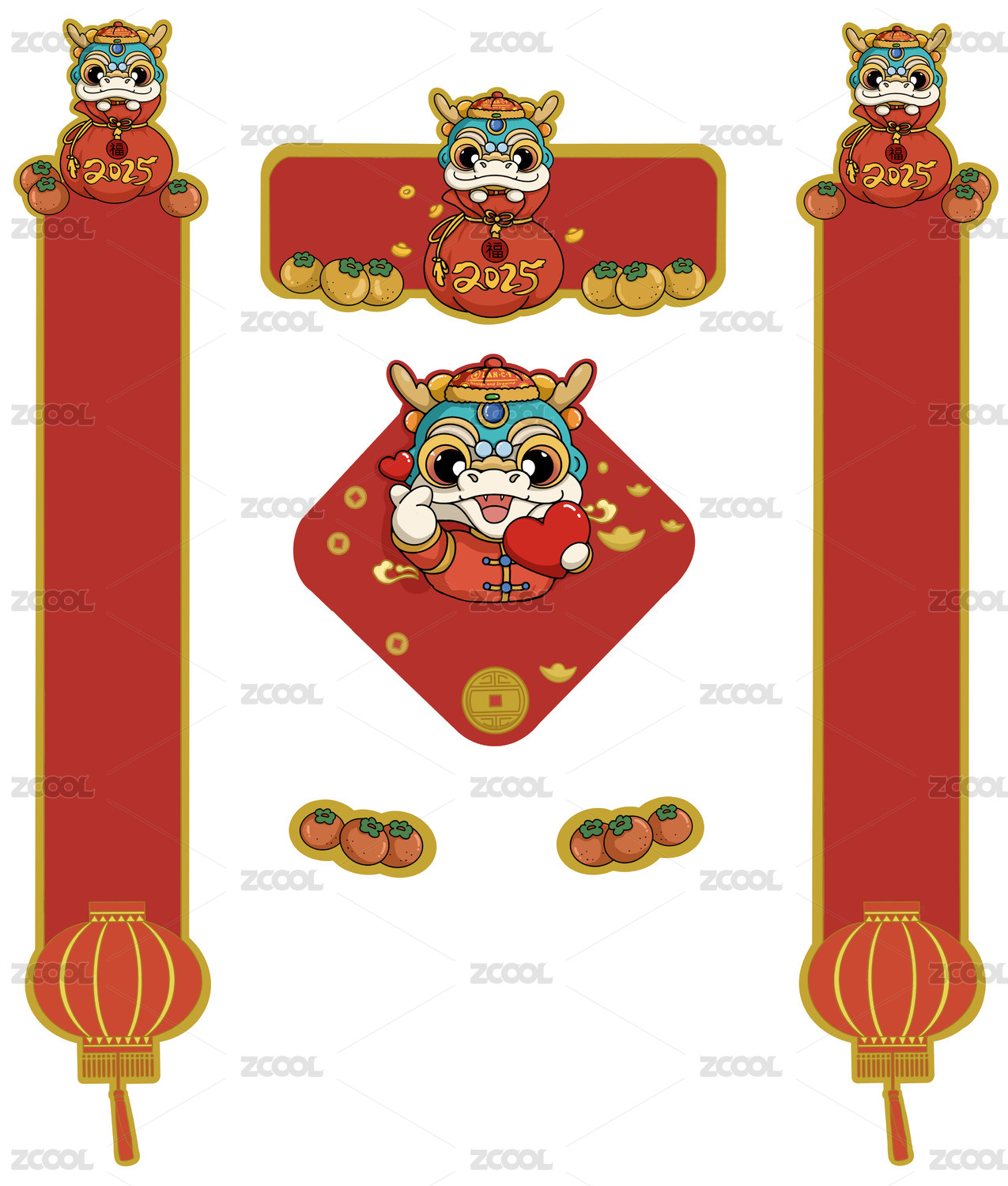 龙年矢量卡通插画喜庆美陈展台设计