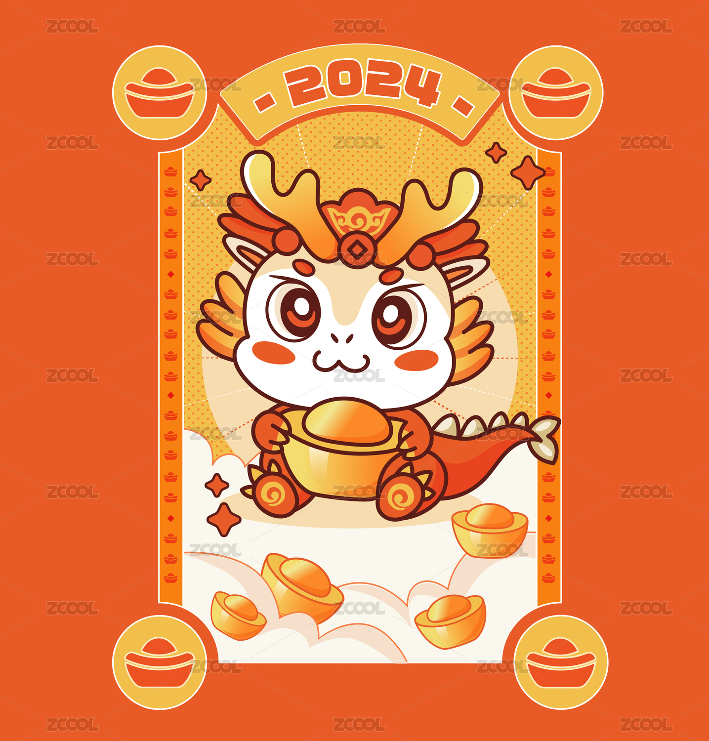 2024龙年可爱卡通插画