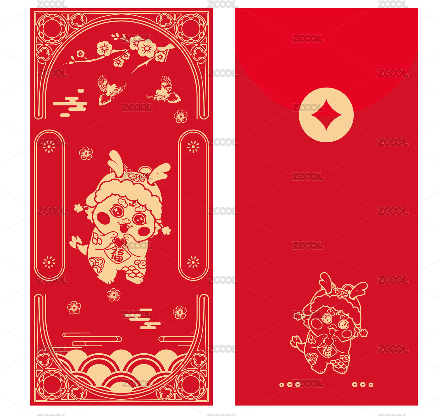 红包,展开图,模版,矢量,2024,龙,节日
