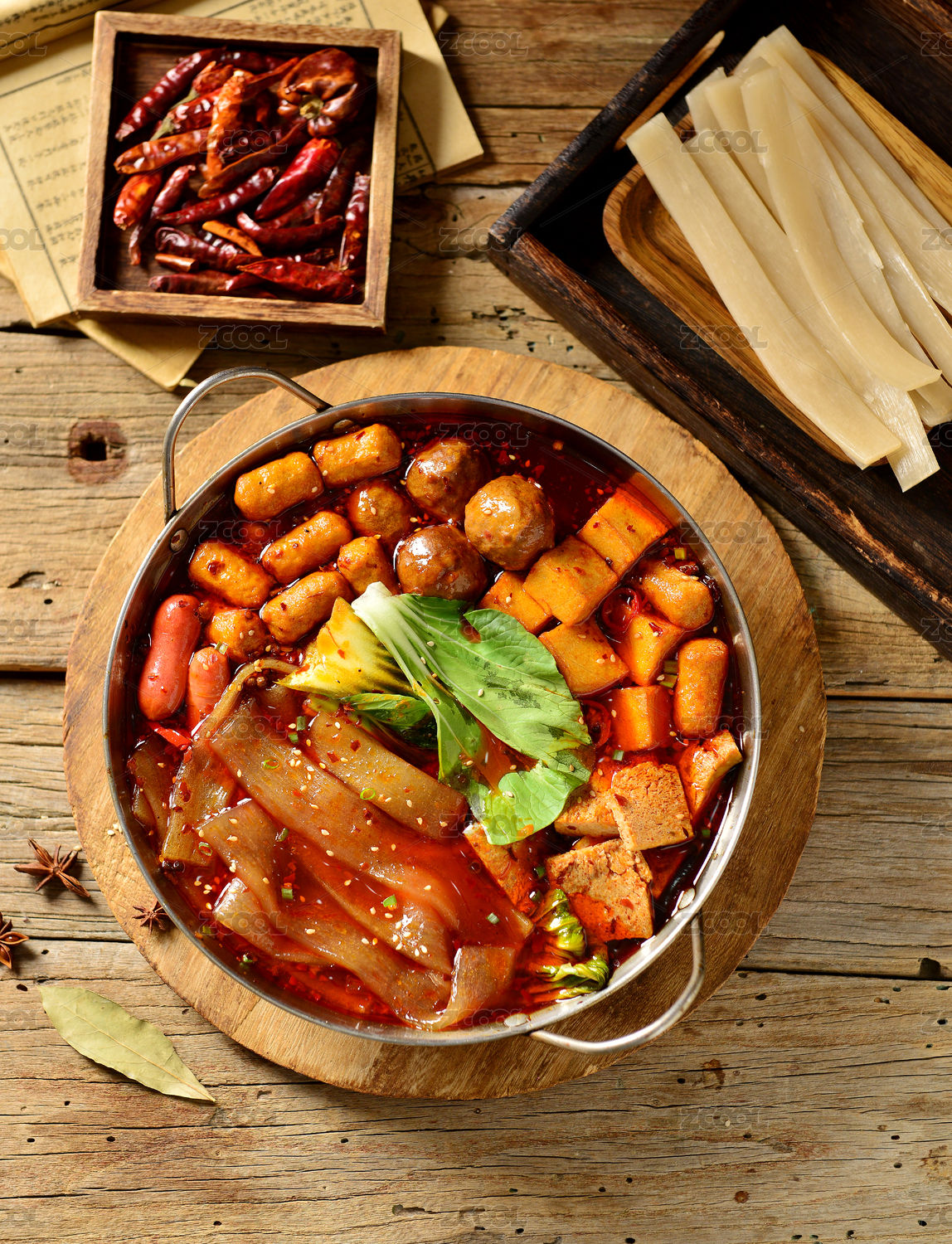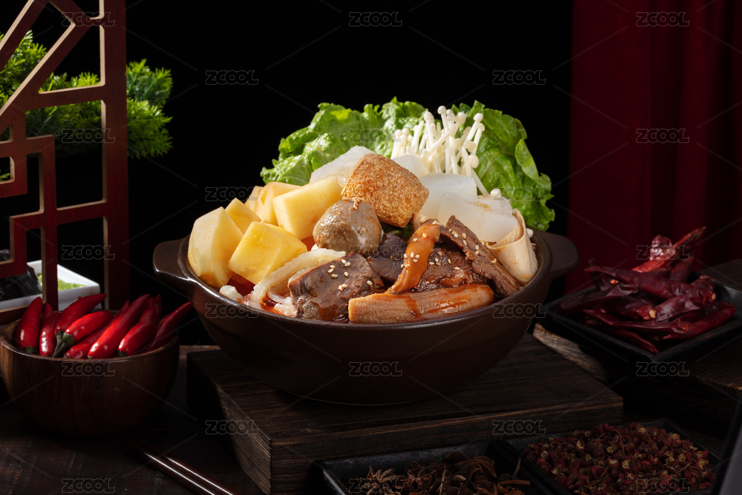 砂锅里的土豆牛肉丸豆腐泡麻辣红烧牛肉火锅