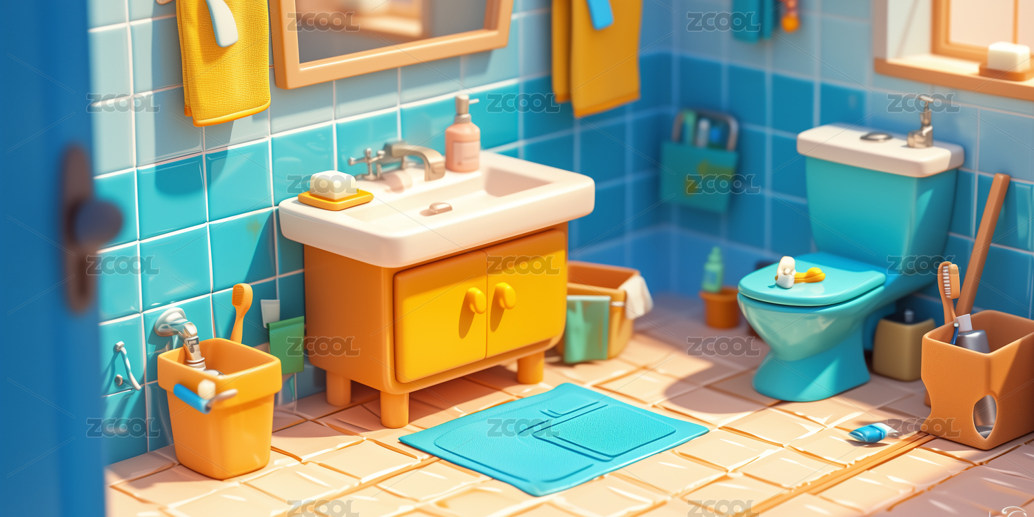浴室,室内,装饰,装修,特写,3D,卡通,白色,地砖,瓷砖