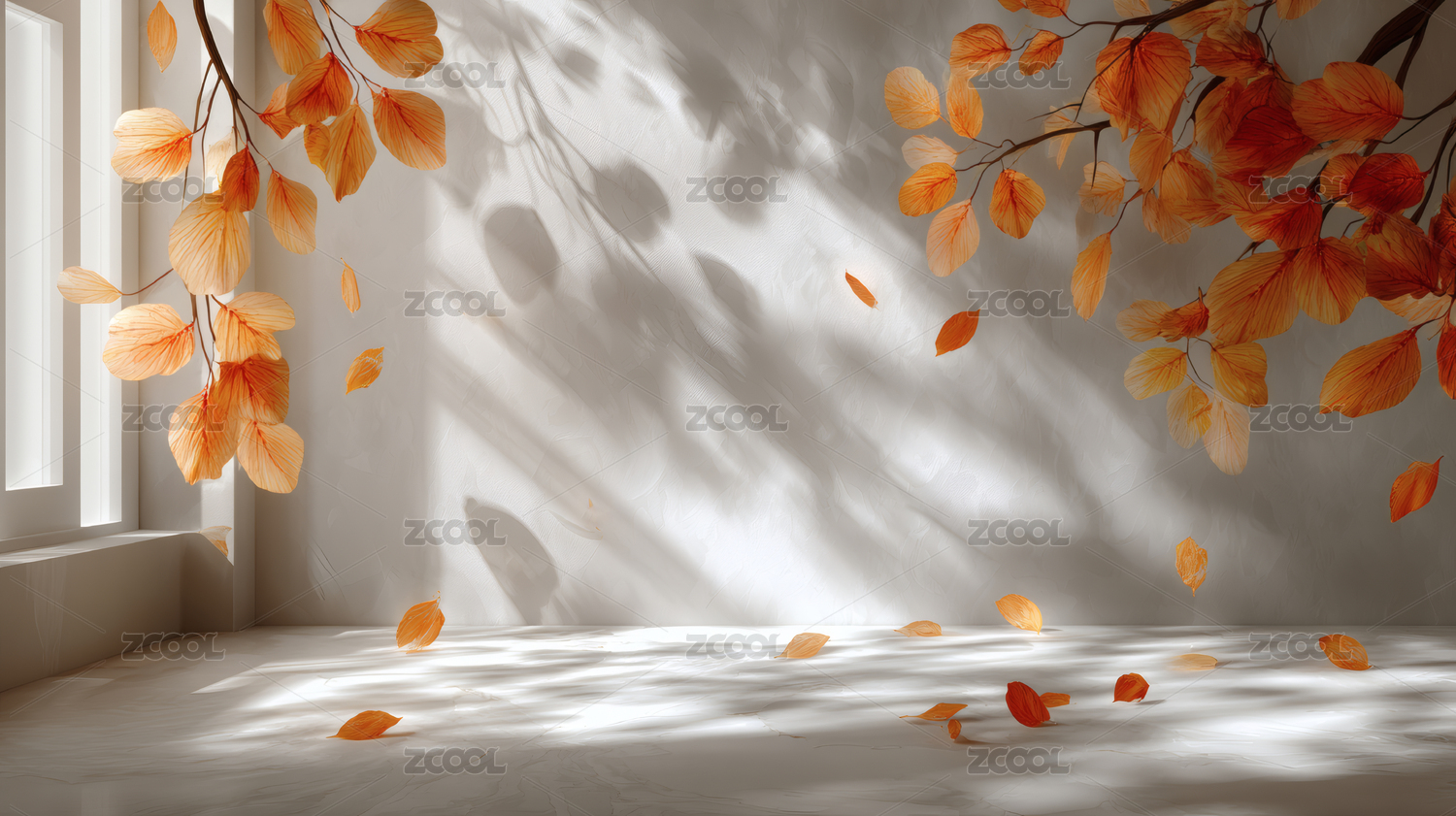 秋天,晴朗,窗外,金黄色,枫树,3D,卡通,插画,天气,秋季