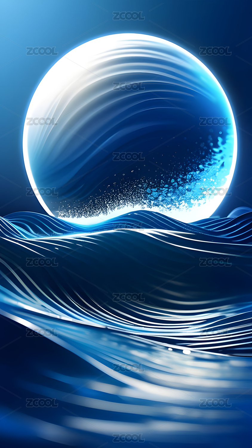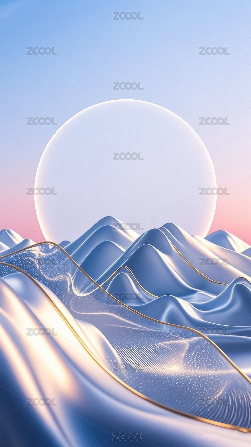 数码蓝银色沙漠山丘场景抽象海报网页背景